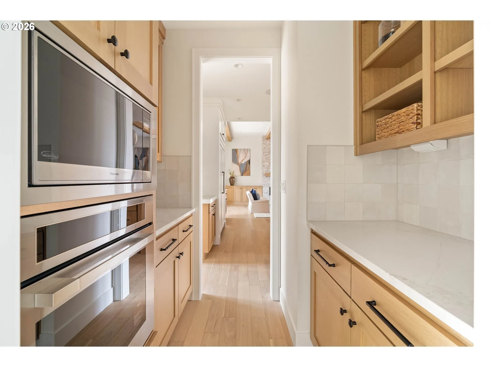 Set in Portland’s desirable Montclair neighborhood, this newly constructed residence pairs timeless architecture with modern comfort & everyday convenience. Montclair is known for its strong sense of community & is ideally located in Washington County, just a short stroll to Portland Golf Club, Oregon Episcopal School (OES), and New Seasons Market, with Jesuit High School & the new Raleigh Hills Elementary nearby. Downtown Portland, Nike, Intel, and the Sunset Corridor are all within easy reach. The main living areas unfold in a light-filled open layout designed for both everyday comfort & elevated entertaining. The living room features built-in cabinetry, beamed ceilings, and expansive sliding doors that open to the outdoor living spaces. At the heart of the home, the kitchen pairs quartz surfaces with premium appliances, including a BlueStar 6-burner range, a Fulgor Milano oven, a Sub-Zero built-in refrigerator, and a Miele dishwasher. The dining area features a built-in hutch with a Sub-Zero wine refrigerator, while a butler’s pantry provides storage & prep space. Two dedicated offices provide exceptional flexibility for work-from-home living. One office includes built-in bookshelves, while the second features a built-in desk. The main-level primary offers a private retreat with a spacious walk-in closet featuring a custom organization system & a spa bath with heated tile floors, a soaking tub, and a walk-in shower with dual heads. A separate guest suite on the main level includes its own walk-in closet & full bathroom. Upstairs, 3 additional bedrooms provide flexible living space, including one large room that can function as a bonus or playroom. Outdoor living is designed for year-round enjoyment, with a partially covered patio featuring a built-in fireplace, outdoor ceiling fan, built-in heaters, and gas plumbing for a future BBQ. Additional features include dual-zone HVAC systems, a central vacuum, and designer landscaping in progress (see attached plan).