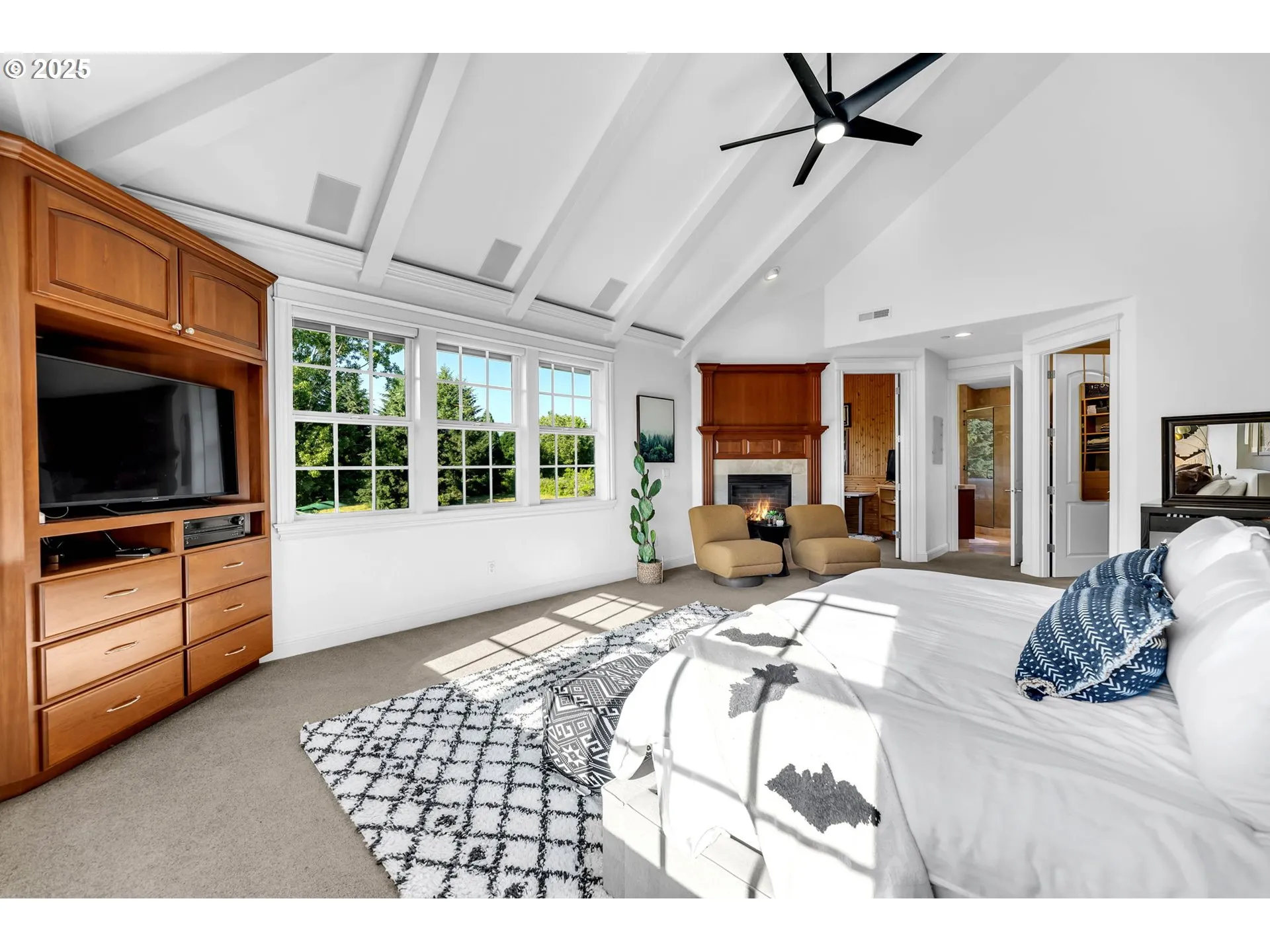 Private tree lined drive leads your guests to this stunning 6.53-acre Cape Cod Estate. A retreat designed for comfort, elegance, and unforgettable moments. Two Primary Suites! Main level suite features gas fireplace w/ cherry cabinetry surround & two spacious walk-in closets w/ built ins. Upper-level 2nd primary w/ vaulted beamed ceilings, gas fireplace, flex space w/ bayed window & spacious walk-in closet. 5 additional bedroom suites upstairs including gym/yoga room w/ balcony, spacious laundry room, storage room & back staircase. Second level guest quarters w/ separate entrance, kitchenette, vaulted bedroom, full bath & private balcony. Two story formal living w/ floor to ceiling windows, gas fireplace w/ marble surround. Main level office w/ built-in desk offering three workstations, built-in bookshelves & closet. Chef’s kitchen features cherry cabinetry, 6 burner Viking range, expansive solid granite workspace & island w/ bar seating for 7, two dishwashers, built-in kitchen desk & large walk-in pantry. Gorgeous formal dining features cherry boxed beam ceiling, gas fireplace w/ cherry built-ins & French doors to covered patio. Main level enjoys heated tile flooring. Great room w/ bay window and built-in cherry cabinetry is an entertainer’s dream. Double sliders open to beautiful outdoor covered entertaining w/ bar, infrared BBQ, outdoor fireplace & 1000 sf pool w/ spa. 4 HVAC systems w/ newer A/C units. New 50-year roof. Newer exterior paint. 5 car oversized garage w/ built-in cabinetry & epoxy flooring. Separate 1196 sf guest house/office features kitchenette, bedroom & full bath plus several flex spaces & one car garage.