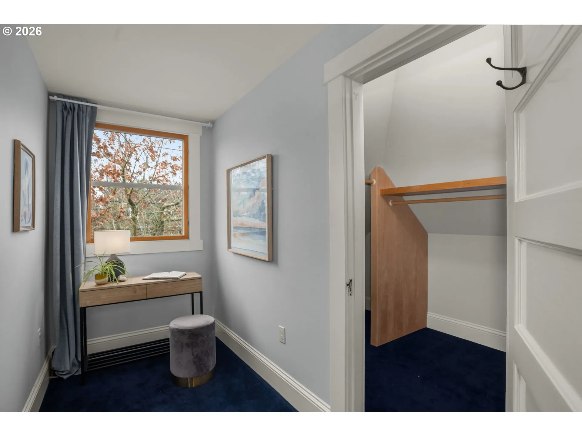 Nestled into the perfect nook between Hawthorne and Division, this special home is an exciting opportunity to own your slice of Richmond neighborhood. The main level features an updated kitchen with eating nook, and an open living/dining room. The sunny office has a wall of windows looking onto the backyard. The bathroom was renovated in 2022 and features an open shower (ADA accessible) and heated tile floors. The upstairs is private, cozy, and has high peaked ceilings, a rare feature in Portland. A spacious closet, built in bookshelves, and a generously proportioned room lend it a retreat like feel. The front porch is covered for rainy days and meeting neighbors passing by, and the back yard is fenced for a private feel with a patio for summer. New roof and siding in 2016, AC and high efficiency gas furnace. Walk to New Seasons, Por Que’ No, endless shops, services and restaurants. SE Harrison is a biking street one block away, head on up to Mt. Tabor park or down into the heart of this historic area. Walk Score: 96, Bike Score: 100 [Home Energy Score = 4. HES Report at https://rpt.greenbuildingregistry.com/hes/OR10245663]