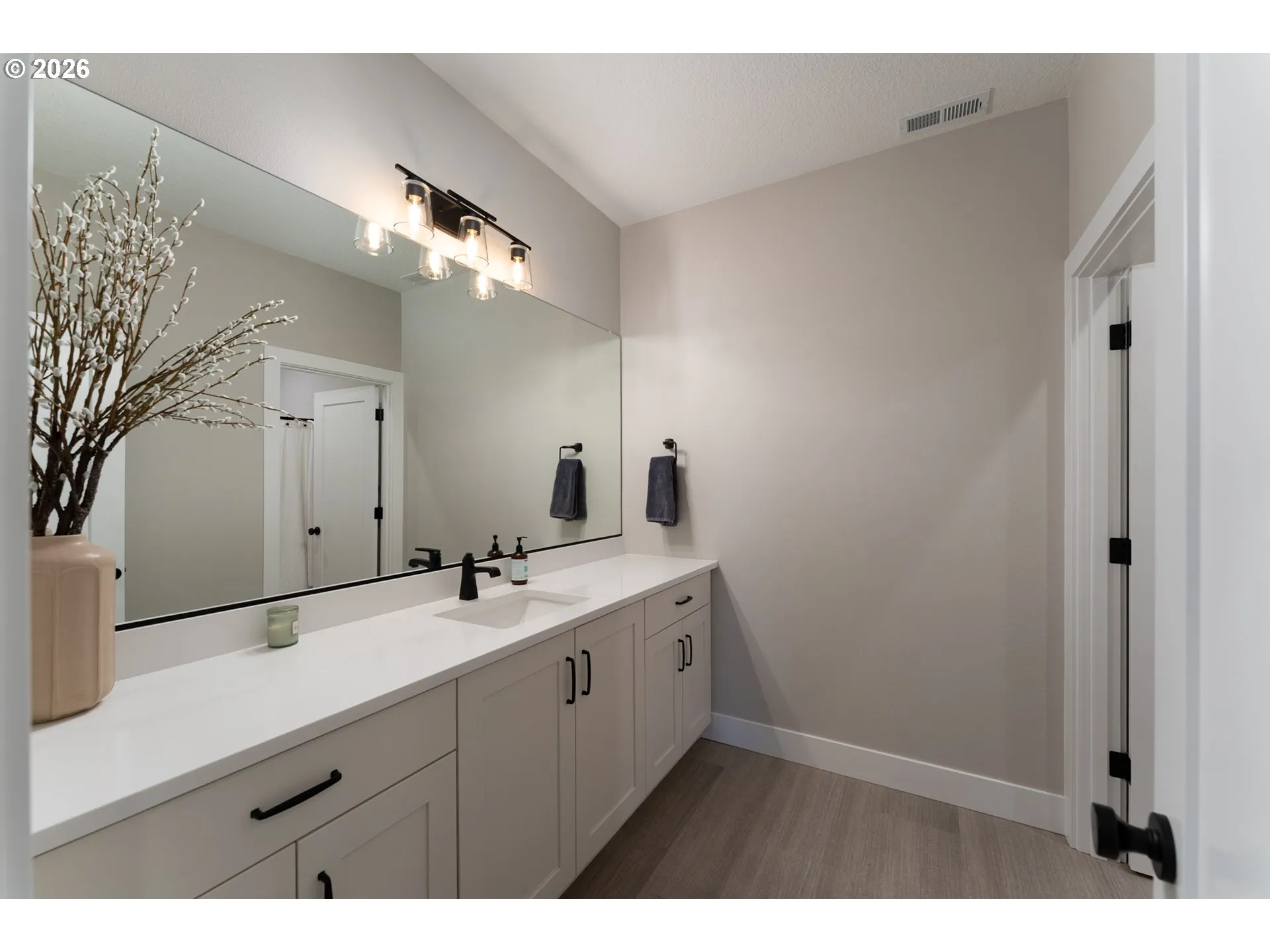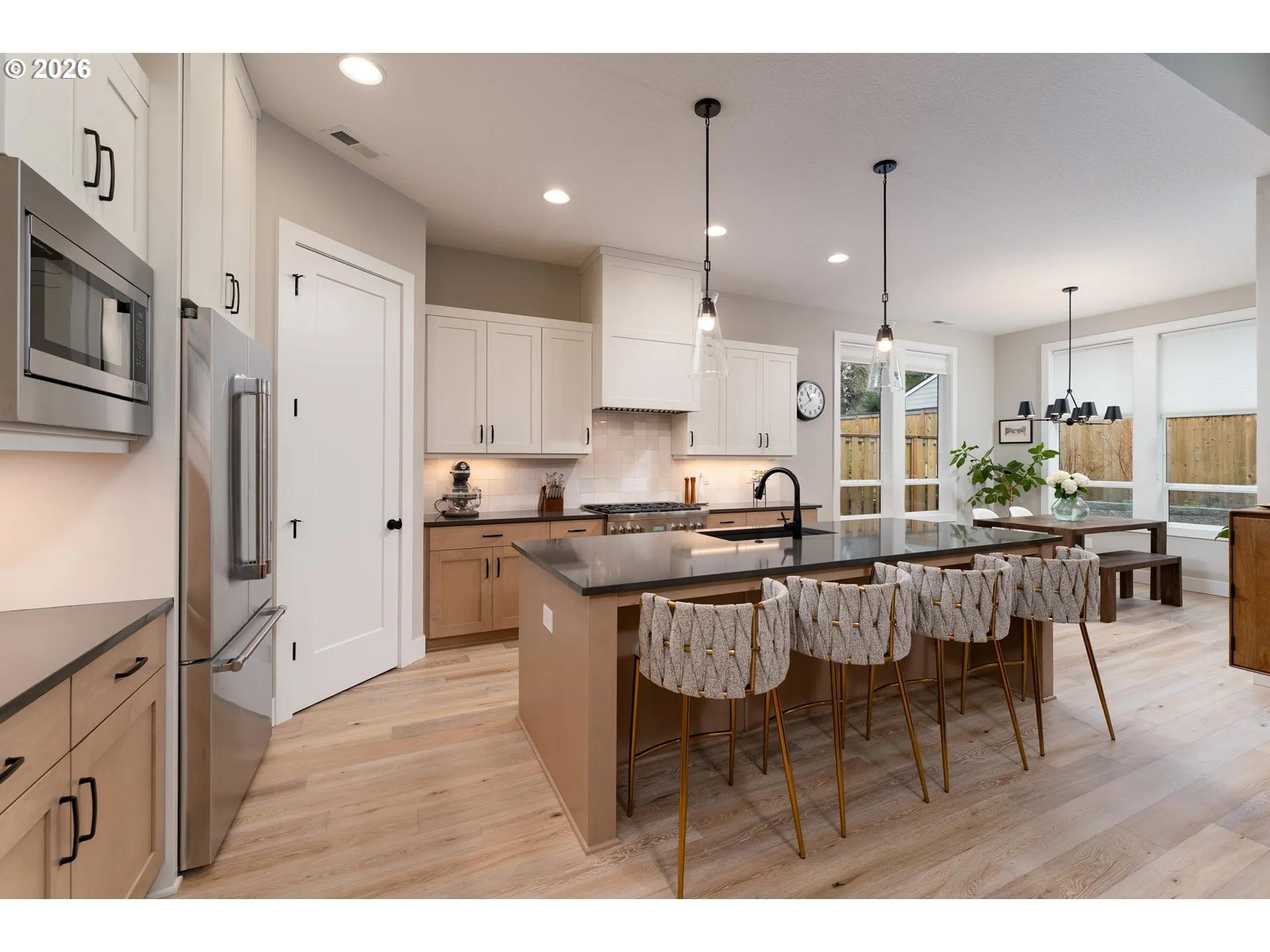Modern Contemporary Farmhouse situated in the heart of Garden Home. Garden Terrace is an 8-lot development on a dead end street blocks to Trader Joes, Old Market Pub, Fanno Creek Trail, and Moonshadow Park with easy access to Red Tail Golf Course, Portland Golf Club, Multnomah Village and Washington Square. The surround neighborhood is pedestrian, dog and even horse friendly. Completed in 2023 by Westwood Homes and loaded with architectural details and designer finishes, this home has been lightly-lived in, well-cared for and clean as a whistle. Interior finishes include engineered hardwood and tile floors, custom cabinetry, automatic and room darkening window treatments. The main level primary suite includes 10-foot ceilings, dual vanities, soak tub, separate glass/tile shower & large walk-in closet. The kitchen includes quartz counters and island, Thermador appliances including 36-inch (6 burner) gas range with integrated range hood and large pantry. The great room has 12-foot ceilings, gas fireplace, open shelving with additional built-ins. Generous den with large closet and additional small storage area. Utility/mud room with folding shelf, barn door and boot/coat bench and hooks. The upper level includes two bedrooms, full bath and additional 4th bedroom or bonus room. Two-car garage with additional space ideal for shop, work bench or exercise space. Exterior amenities includes a low maintenance grounds, fenced yard, covered patio plumbed with gas. Recent improvement and updates include a new front yard and landscape, rear flagstone path, trees and landscape, second fence gate, garage sink and extra hose bib. Ultra quiet and close-knit community with Washington County Taxes. Seller is licensed real estate broker in the State of Oregon.