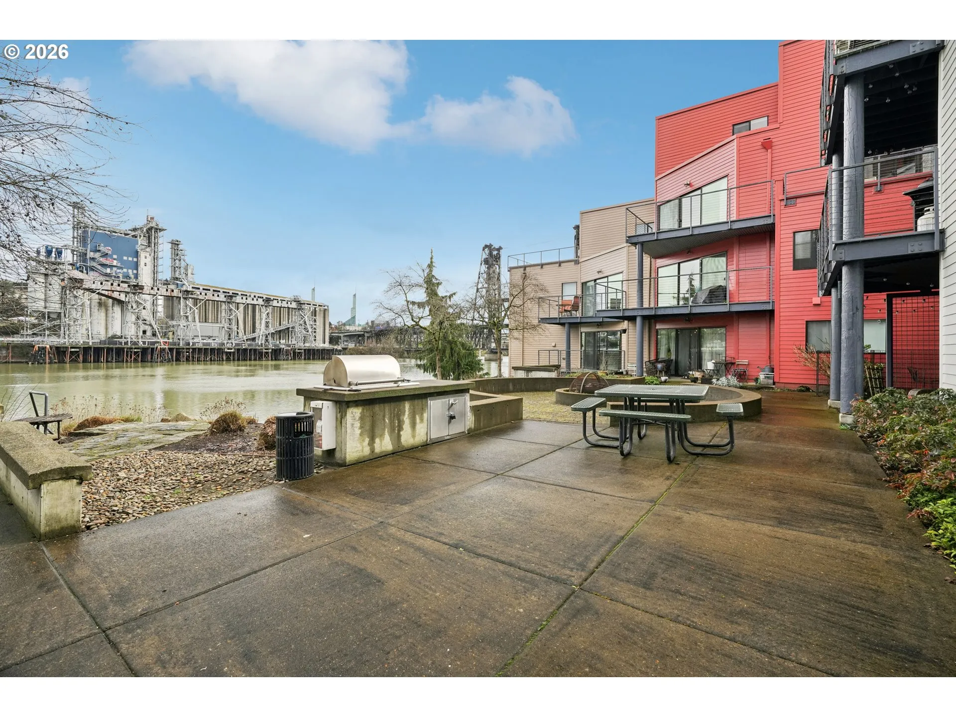 Enjoy stunning riverfront living in this one-level, ground-floor condo located in the heart of Portland. Take in beautiful views of the Willamette River and the iconic Steel Bridge right from your home. This bright, open-concept condo features a spacious kitchen that flows seamlessly into the living area and is filled with natural light. Step out onto the covered patio for relaxing river access—perfect for enjoying the sights of boats passing by during Portland Fleet Week. Residents enjoy resort-style amenities including a community pool and spa, as well as a beautifully landscaped riverfront courtyard featuring a cozy fireplace and BBQ grill—perfect for entertaining friends and family. Step outside to explore 15 miles of scenic paved waterfront trails. Additional highlights include: One-level ground-floor living, new carpet, covered patio, covered & deeded parking space, secure gated entry, air conditioning, and convenient access to light rail and bus lines. Close to downtown restaurants, shops, and entertainment.