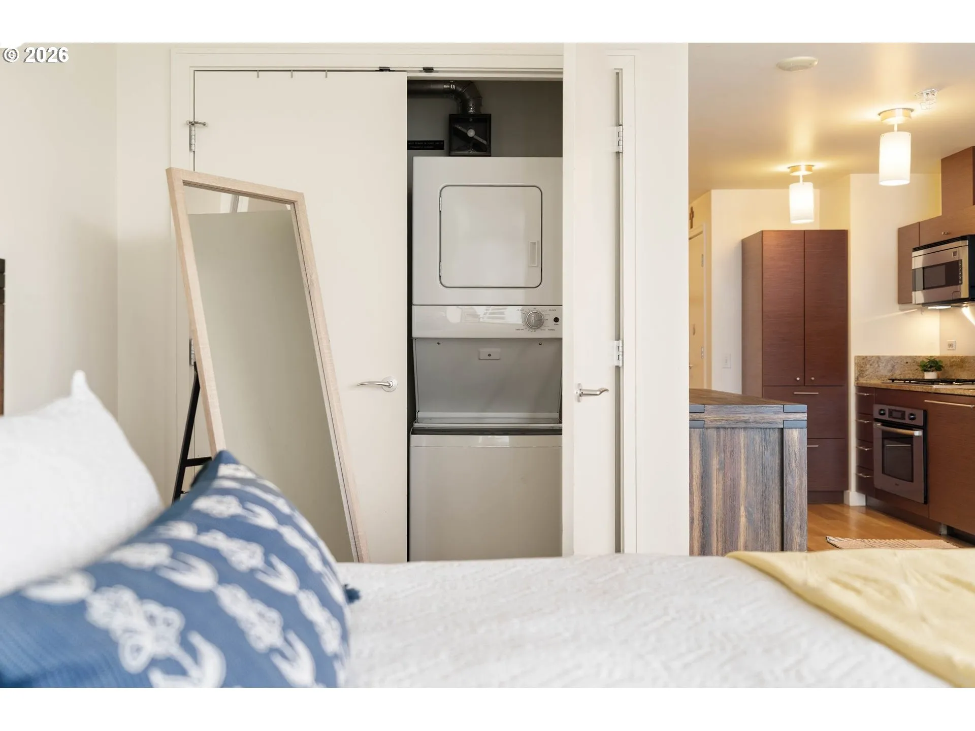 Immaculate Studio on 22nd Floor in the South Waterfront’s John Ross Building. Wall to wall windows showcasing views of the West Hills and Willamette River. Step inside to discover beautiful hardwood floors and a gourmet kitchen featuring sleek stainless steel appliances, a stylish tile backsplash, and elegant granite countertops—ideal for both everyday living and entertaining. Home is complete with a deeded parking space. The John Ross is luxury condominium building with 24/7 concierge and beautiful amenity spaces including a 5th floor roof top barbeque area, and 2nd floor party rom and adjoining terrace. Located in Portland’s highly desirable South Waterfront along the river with OHSU, Greenway trail, parks, restaurants, shops, and fitness studios right out your door. OPEN HOUSE Saturday 3/14 from Noon-2pm