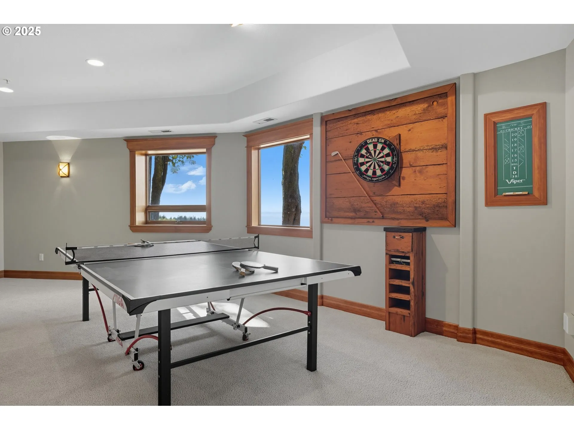 Views Views Views, Welcome to Varsity Lodge, Custom Lindal cedar-built retreat perched on a peaceful hillside overlooking the Columbia River and Oregon Coast. Designed for those who appreciate craftsmanship, comfort, and connection to nature, this remarkable 4-bedroom, 4.5-bath home offers 4798 square feet of luxury living where modern elegance meets timeless wood artistry. Expansive floor-to-ceiling windows flood the home with natural light and frame sweeping panoramic views from nearly every room. Distinctive cedar finishes and soaring 25-foot wood-beamed ceilings create a warm, welcoming ambiance, while the open floor plan blends sophistication with comfort. The great room centers around a stunning stone fireplace and flows seamlessly into the dining area and chef’s kitchen featuring polished granite countertops, premium stainless appliances, and rich custom cabinetry that celebrates Lindal’s signature craftsmanship. Both primary retreats one on the main level and one upstairs include private fireplaces, ensuite baths with spa-like finishes, and breathtaking views. Additional living areas include a sunlit artist’s studio, reading nooks, and cozy alcoves that invite relaxation and creativity. The custom daylight basement redefines luxury living with an entertainment lounge and bar, game area, private gym, and inspiring studio. Behind a secure vault door lies a private indoor archery range — a rare and extraordinary feature for the discerning enthusiast. Set on 2 lush acres, the property is surrounded by evergreens and landscaped gardens featuring a tranquil pond and cascading waterfall. Expansive decks overlook the river, offering the perfect setting for outdoor dining and sunset views. A three-car garage with a full workshop, built-in shelving, and mower access completes this exceptional estate. Varsity Lodge is more than a home, it’s a lifestyle.