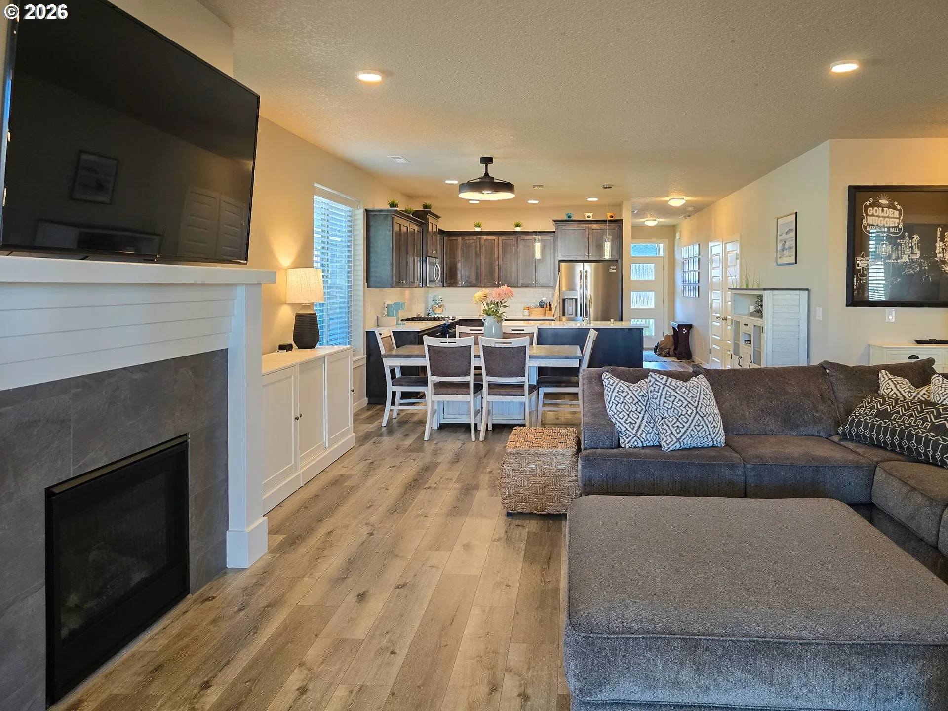 Built by Urban NW Homes, 2024 Builder of the Year by Clark County Building Industry Association, this impeccably maintained single-level 3-bed/2-bath, 1,627-sf home stands out even among newer neighborhoods for its thoughtful design, NGBS Gold Certification, and inviting comfort. Set on a large premium lot backing to a mature cedar tree line and a tranquil greenspace retention pond, the home offers a rare sense of privacy and calm while remaining bright, open, and welcoming. Inside, high, 9-foot ceilings and a bright, open great-room layout create an easy flow between the kitchen, dining, and living spaces perfect for everyday living and relaxed entertaining. The kitchen features an island, quartz slab counters, alder cabinetry, stainless appliances, a pantry, and warm finishes that feel both contemporary and timeless. A tiled gas fireplace with custom wood built-ins anchors the living area, while French doors open to an extended covered patio for seamless indoor-outdoor enjoyment. The spacious owner’s suite is a true retreat with a soaking tub, tiled shower, and refined fixtures. Quality details continue throughout, including craftsman millwork, luxury vinyl plank flooring, plush bedroom carpeting, custom blinds, ceiling fans, and a finished garage with shelving and a whole-house water softener. Outdoors, enjoy low-maintenance living with front yard care included in the HOA, a fenced backyard, raised garden beds, shed, and concrete patio. Beyond its beauty, this home delivers exceptional performance. Gold-level national green building certification, Energy Star standards, superior insulation, healthier indoor air quality, tankless water heater; NW Natural Winter bills: Feb-$49.64; Jan-$50.44; Dec-$32.52; Nov-$29.08. Tech Hub-CAT5-6, smart security features provide peace of mind, and long-term value. A rare opportunity to own a well-kept, thoughtfully built home that feels cozy, spacious, and effortlessly livable that is designed for today and built to last.
