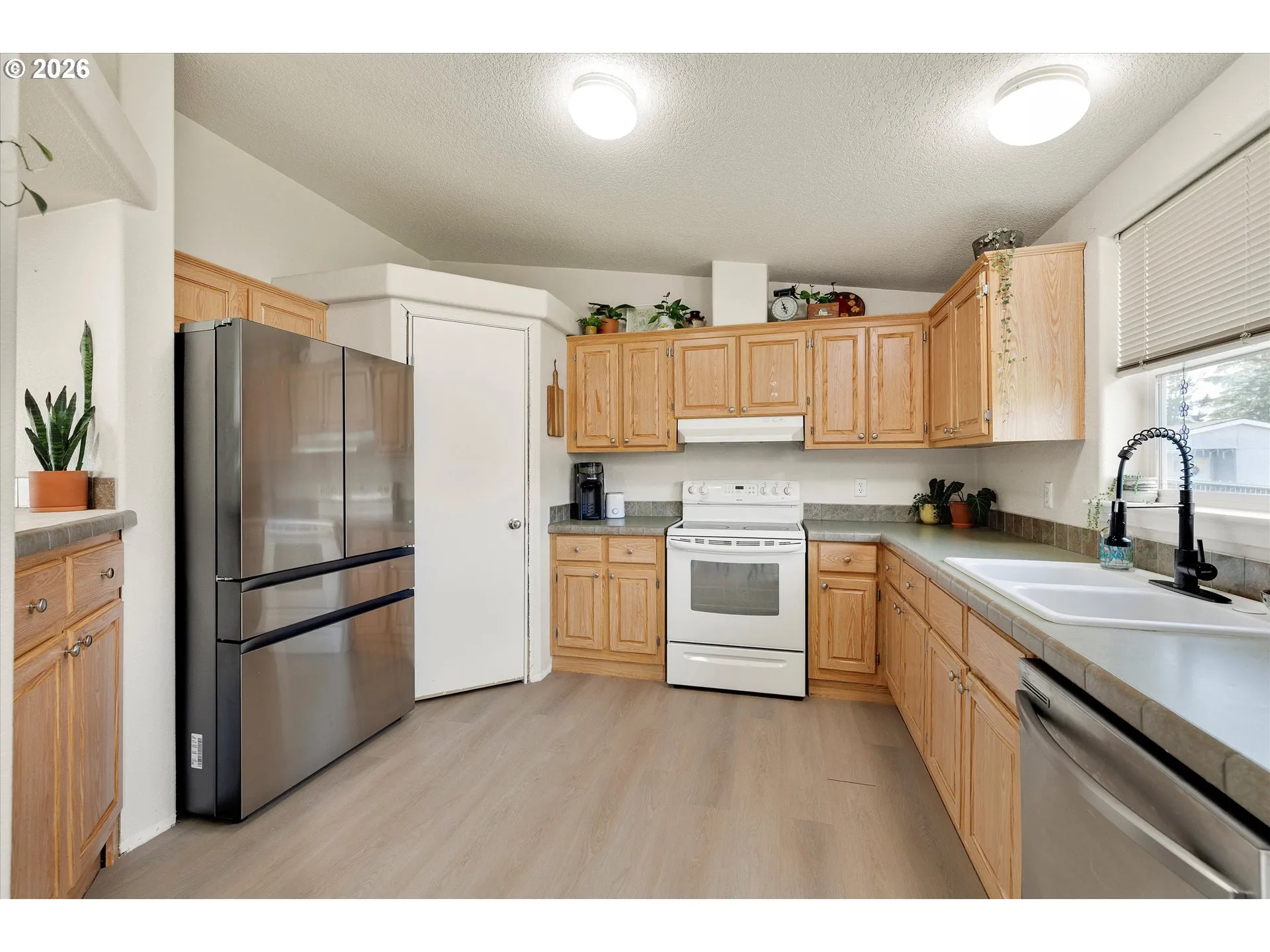 Step inside to a home that feels barely lived in. Comfort, Convenience & Peace of Mind! This spacious 1,244-square-foot double-wide with a Garage sits on a prime corner lot, offering a bright and open floor plan with high ceilings, elegant rounded corners, that create an airy, inviting atmosphere. The home features three comfortable bedrooms and two full bathrooms, including a dedicated laundry room complete with a washer and dryer. All appliances are included, and the home is already strapped to meet earthquake safety requirements. So Bring your FHA financing! The property has been meticulously maintained with significant big-ticket upgrades, including a new exterior paint job in 2019, a durable, copper-infused 40-year roof installed in 2017, Newer Water Heater and a Heat Pump! Did I mention, the 2- Car garage and additional parking pad? Outside, you’ll find a 6-foot cyclone fence equipped with a privacy screen, providing a secure and secluded feel. Ideally situated on the edge of town, and just a short, scenic drive away, from Oregon City. Discover a rare opportunity where uncompromising quality meets true affordability. Coming soon: The home will be elevated with brand-new trim and baseboards, throughout most areas, giving the space a sharp, “just-finished” look that rivals newer construction. Your dream home is ready but it won’t wait forever! (Virtual staging provided)