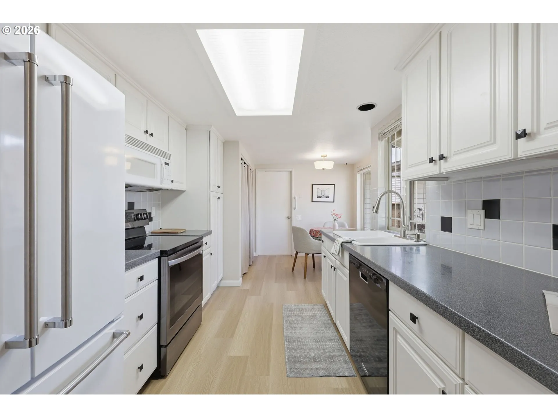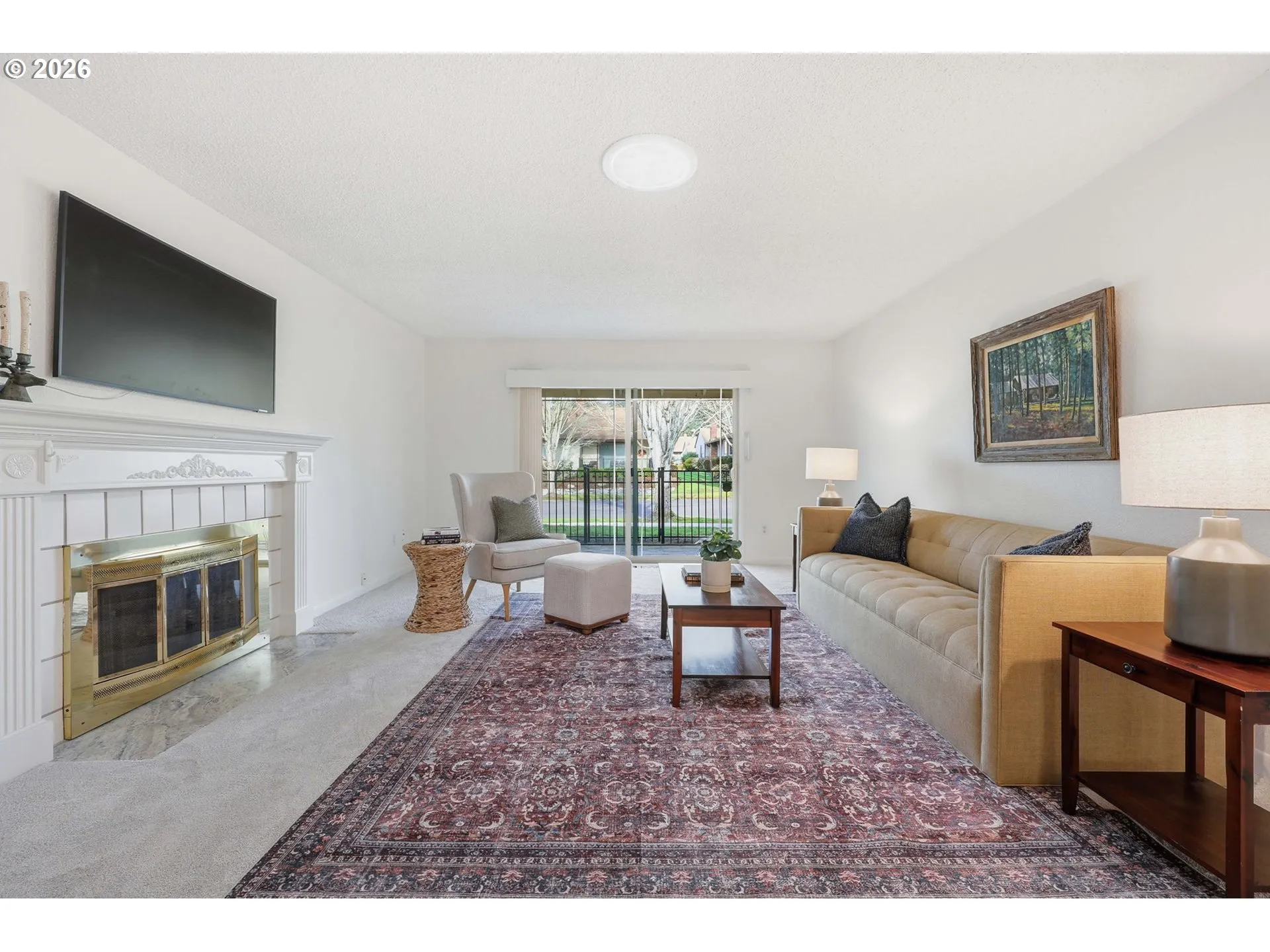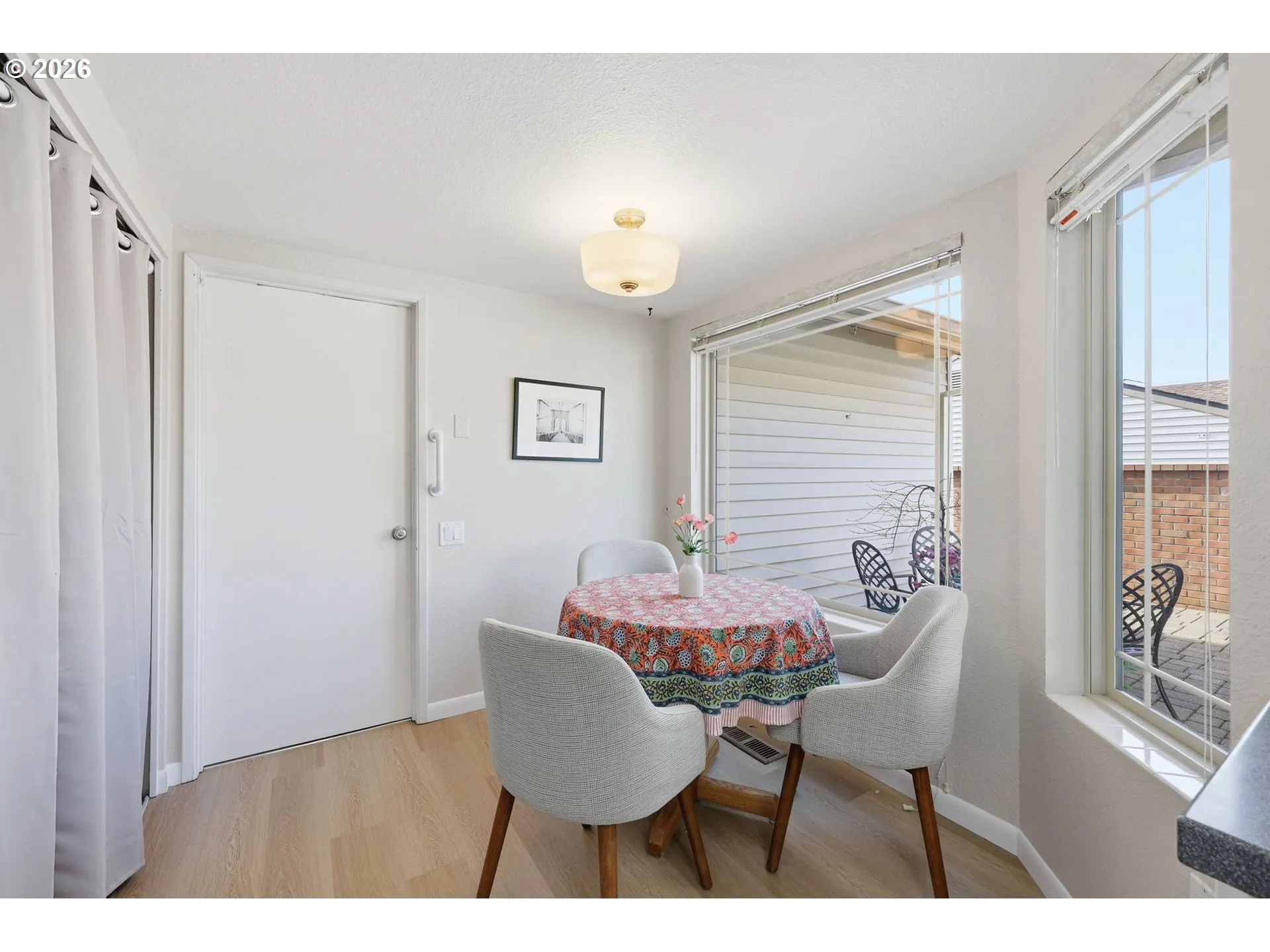 One level townhome located on a peaceful and private street in this sought after 55+ community. Conveniently located close to the clubhouse with all the community amenities including golf, tennis/pickleball, pool, fitness center and more. This property has been meticulously maintained and recently updated. Newer LVP flooring and high-end carpet throughout, newer appliances including refrigerator, range, microwave, washer & dryer. Spacious living room has a gas fireplace, solar tube and plenty of space to entertain. Open living/dining areas that look out to a covered and fenced, stone patio area. Primary bedroom suite has a bathroom with a walk-in shower and spacious double closets. Hallway bathroom also has a walk-in shower. Property has a gated, sunny front courtyard ideal for gardening. Roof was replaced in 2025, new sewer in 2024. Seller is a licensed Oregon broker.
