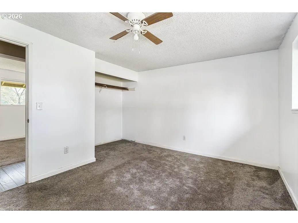 This 3-bedroom, 1.5-bathroom ranch-style home built in 1975 offers 1,029 square feet of single-level living on a spacious 0.24-acre level lot. The property features wood siding, a composition roof, and an attached 2-car garage with driveway parking. Inside, enjoy open living spaces with laminate wood flooring, ceiling fans, and sliding glass doors leading to the backyard. The galley kitchen includes white cabinetry, a dishwasher, stove, and sink, while the bathroom showcases a vanity and shower. The home is served by Burnt Bridge Elementary, Pacific Middle, and Evergreen High schools
