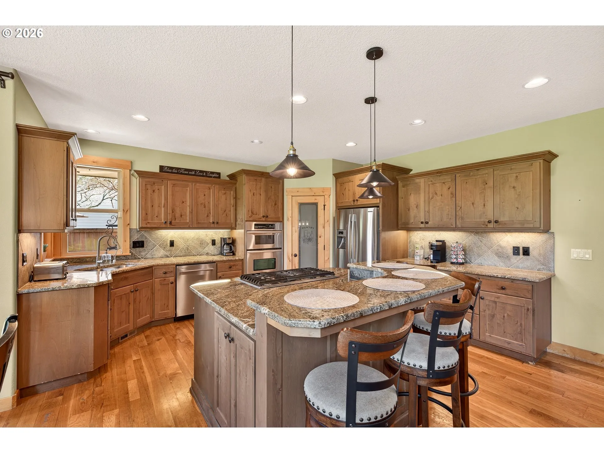 Beautiful High Quality Custom built home by master builder Mike Donnerberg, backing up to the park like setting on Michelbook Golf Course 14th hole. Imagine living in this Stunning Sunriver style home with Sunrise views and many deer Relaxing and laying in the flower beds. Inside features an open floorplan with exposed wood beams and vaulted ceilings, a wall of custom cabinets and stone fireplace, large windows with natural light and stunning views. The Custom Gourmet kitchen includes Granite counters, gray slate tile backsplash, Knotty Alder soft-close cabinets, and spacious island. Adjacent serving island and wine fridge borders your formal dining area. Beautifully stained Craftsman woodwork and doors are thru-out this house. The spacious main level primary suite has it’s own sliding door to a private covered patio viewing the fairway. Enjoy your Spa like ensuite featuring tall ceilings, a large glass tiled shower, jetted tub with privacy glass, and a large walk-in closet. Large office off the entry with 1 additional bedroom downstairs. Spacious laundry room with folding area and tons of cabinets. Upstairs 2 bedrooms have loft area and private bathroom. Backyard includes large main patio, Nice covered patio to entertain from Kitchen area and 1 off primary suite. Beautifully landscaped yard with automatic sprinkler system, Concrete pad along side of garage for clean and easy access from front to side Golf cart door and back yard. 3 car garage includes tandem golf cart bay and EV vehicle outlet. Owner’s recent updates include recent exterior paint, newer appliances, air filtration system, 75 gallon water tank, fully lined and encapsulated crawlspace. Seller is a licensed Oregon broker. Adjacent 9500 sq ft lot to north bordering home and golf course is also available for additional price with negotiated house purchase. Currently has owner’s Hot tub and Gazebo which can be removed and are excluded. No sign on property