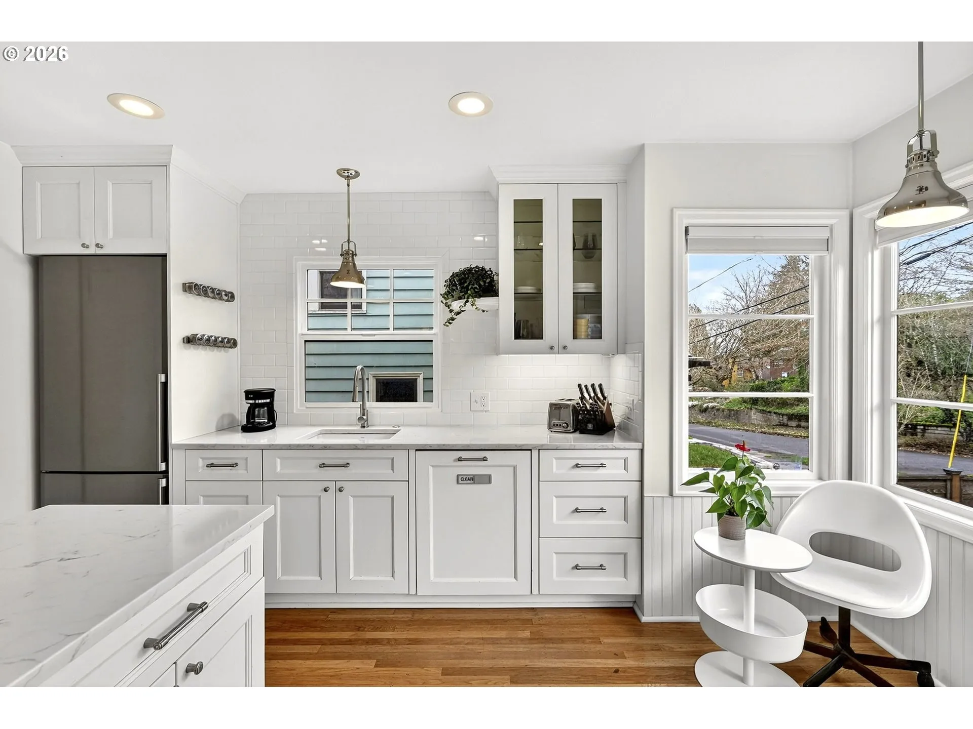 Mt. Tabor may be an extinct volcano, but there’s no end to the excitement that erupts when a classic, updated house comes on the market in the sweet spot of the neighborhood . . . easily accessible to urban amenities on Stark and Belmont, and still just a quick jaunt to the park itself. Nature-lovers will appreciate the environmentally sensitive updates that have pushed this 1948 home to register a Home Energy Score of 7: R-49 attic insulation, rockwool basement insulation, three-zone heat pump, a heat pump water heater, and replacement of select windows. There’s also earthquake bolting, and a rebuild of the upstairs balcony, so you can confidently enjoy the city and territorial seasonal views. A bright, expansive chef’s kitchen, sleek hardwood floors, clever built-ins, tons of closet space . . . and an incredibly rare main level primary suite with its own entrance offer you so many options for home office, family gatherings, guest space, or even an Air BnB suite. There’s also an oversized double garage with storage and workshop, ready for your pet projects and gardening supplies while still giving plenty of room to park. With a Bikescore of 97 and Walkscore of 78, everything you want is convenient, from Tabor Bread to Tabor Reservoir. Don’t miss this special home! [Home Energy Score = 7. HES Report at https://rpt.greenbuildingregistry.com/hes/OR10245428]