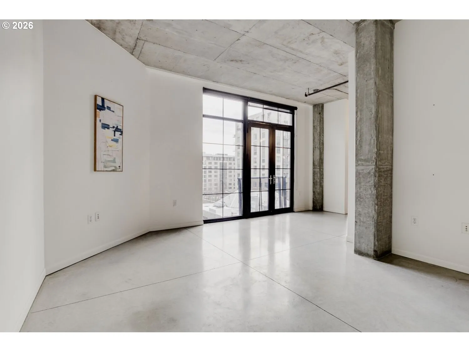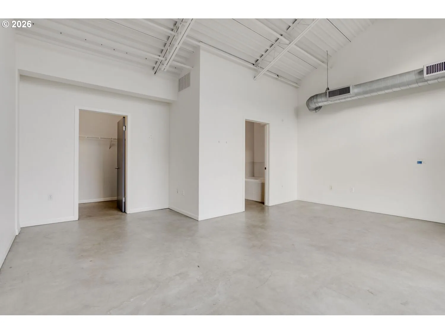 Step into this distinctive industrial-style condo in Streetcar Lofts. This two-story unit features 10–14 ft ceilings, polished concrete floors, and expansive east-facing windows that fill the space with natural light and offer city views overlooking a beautifully maintained courtyard.The main level offers an open-concept layout that connects the kitchen and living area with an electric fireplace next to the floor to ceiling windows. This floor also includes a bedroom with an ensuite bath, making it a versatile flex space that can be used as a dining room, home office, or guest suite.Upstairs, you’ll find a second living area well suited for a den, media room, or creative workspace. The primary suite features french doors that open to a private balcony, a walk-in closet, and a full bathroom with soaking tub, walk in shower, and washer/dryer. Streetcar Lofts offers a range of amenities including a security team, fitness center, community room, and a lush shared garden with BBQ areas. Water, sewer, and garbage are included in the HOA dues. The unit also comes with two side-by-side deeded parking spaces.