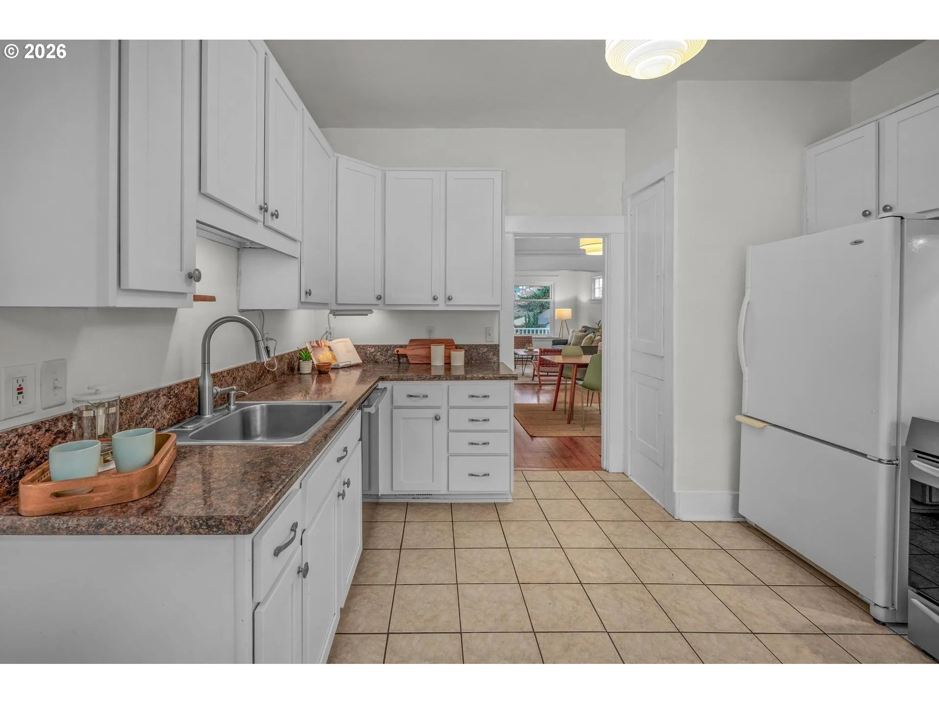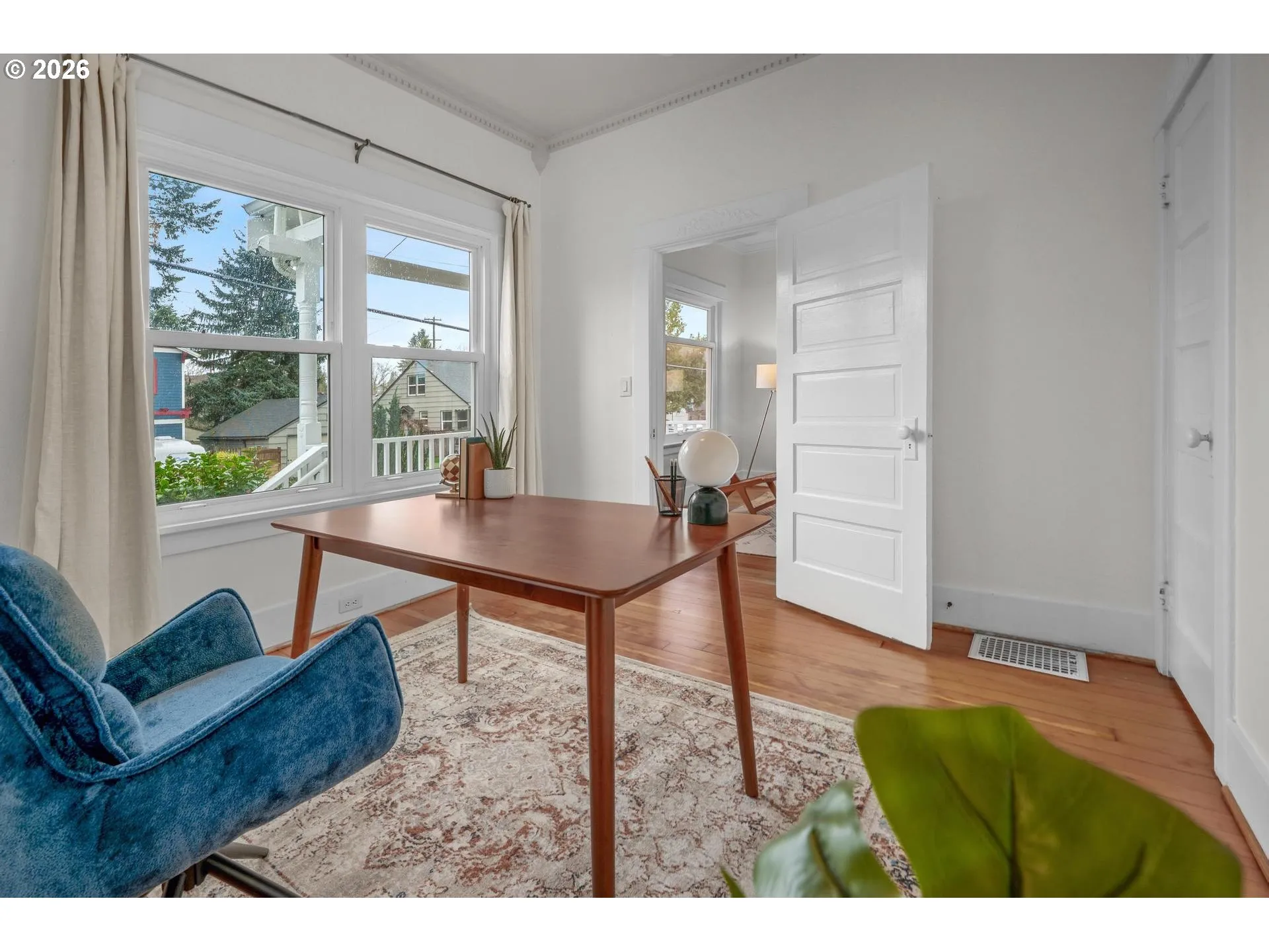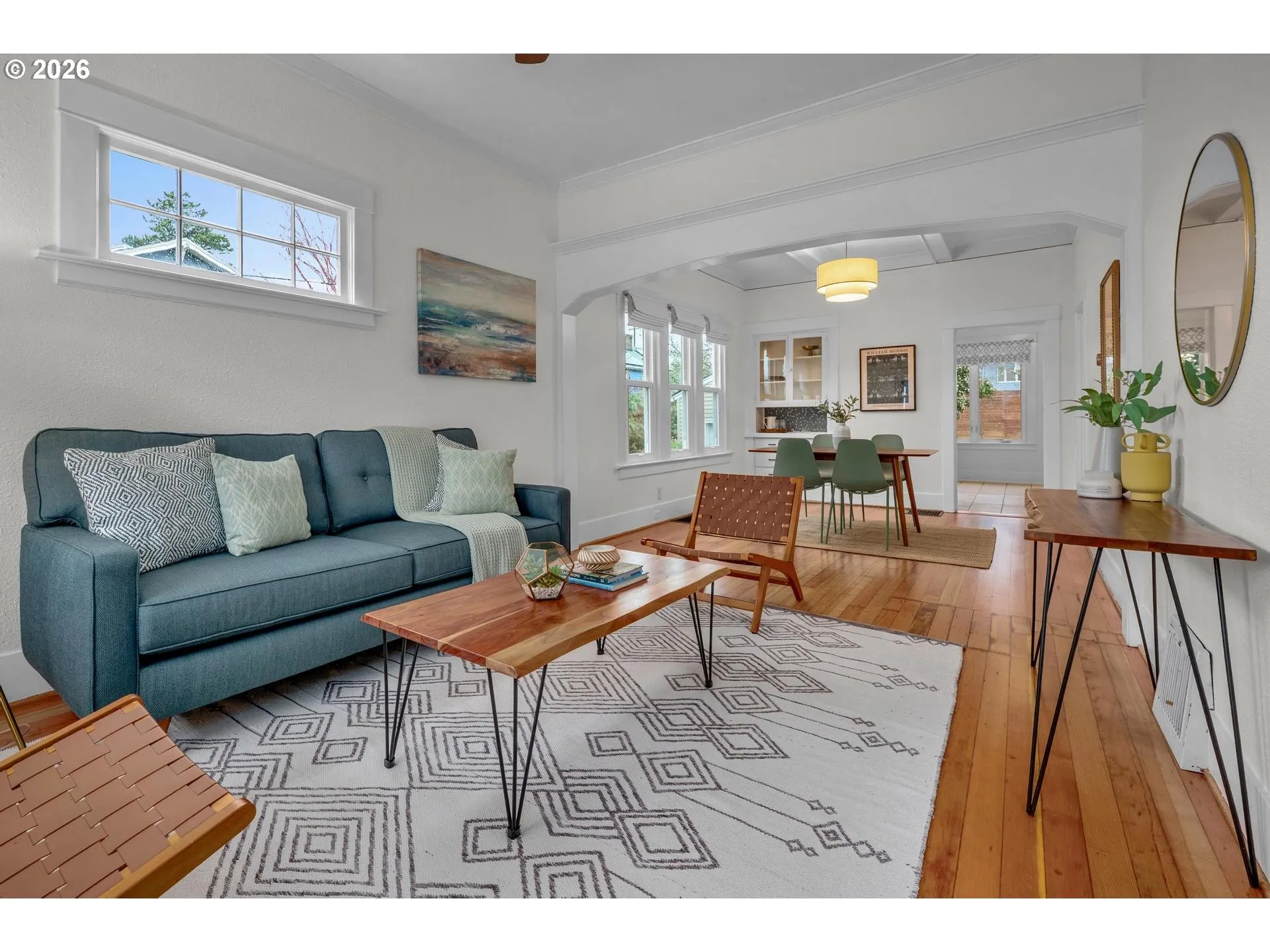 Cute as a button and checking all the boxes, this updated close-in Portland Craftsman blends classic character with thoughtful updates and easy access to Mt. Tabor, Laurelhurst Park, and the vibrant Belmont and Hawthorne neighborhoods. Soaring ceilings create a light and airy feel, while the open living and dining areas provide an inviting space for everyday living and entertaining. Picture rail molding and newly refinished wood floors add timeless character throughout. The kitchen features tile floors, a new induction stove, and beautiful Oregon walnut shelving. Just off the kitchen, a spacious mudroom with new tile flooring is ideal for the Pacific Northwest lifestyle and flexible enough to serve as a small office, sunroom, or creative space. Two generous main-floor bedrooms and a large bathroom with tile floor and a clawfoot tub complete the main level. The updated lower level includes a spacious bedroom with egress window, HUGE walk-in closet,and large family room all with NEW LVP flooring. This flexible space works well for guests, relaxing, or working from home, with room to add a future bathroom (plans available). Important system updates include John’s Waterproofing with lifetime dry basement guarantee a very high value item, radon mitigation, brand new water heater, newer high-efficiency forced-air furnace, double-pane vinyl windows, and a HES of 6!!! Outside, the backyard is perfect for pizza nights, fires, and outdoor movies. Raised bed.Fruit trees- Multiple varieties of apples all on one tree X2 and dwarf plum trees. Bluberries, hydrangea,and more.The garage offers great storage for bikes and gear or room for a workshop. Enjoy sunset dinners on the front porch while watching bike commuters roll by on the neighborhood greenway. Just a short walk to groceries, pizza, cocktails, and one of Portland’s best burgers at Tabor Tavern, with easy access to I-84 and nearby parks and neighborhoods to explore. Low Taxes!! Laurelhurst K-8 and Grant HS. [Home Energy Score = 6. HES Report at https://rpt.greenbuildingregistry.com/hes/OR10245683]