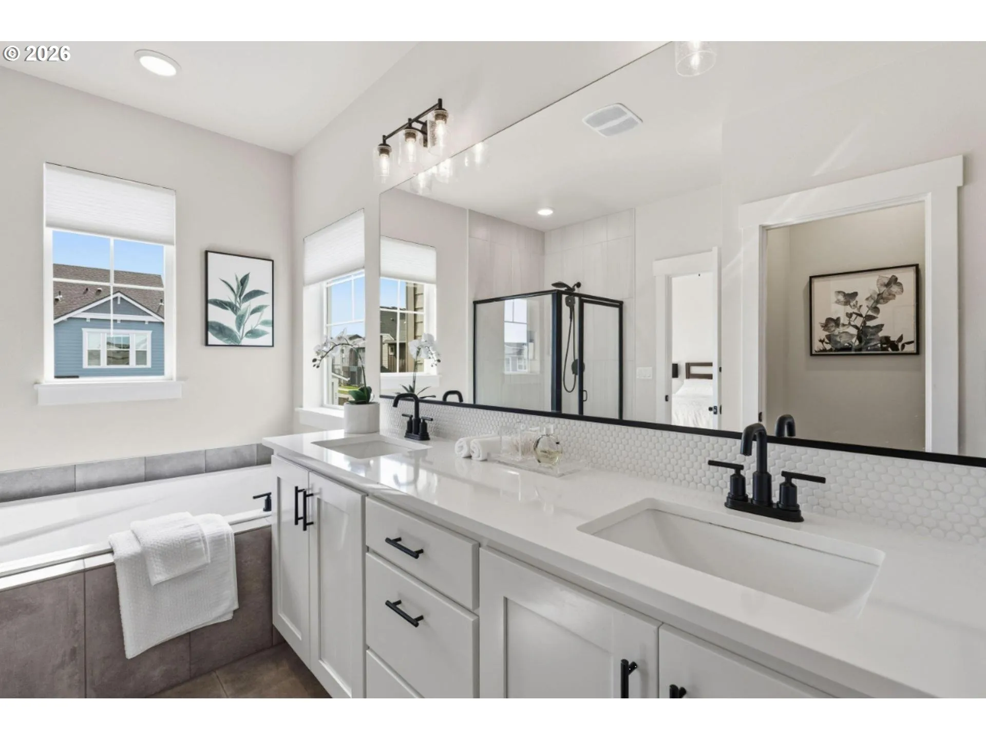 Welcome to this impeccably maintained David Weekley home in the heart of Reed’s Crossing in Hillsboro. This 3 bedroom, 2.5 bath home offers thoughtfully designed living with elevated finishes and meaningful upgrades in one of the area’s most sought after master planned communities. Perfectly positioned on a premium lot with a south facing orientation, this home is filled with natural light throughout the day. High ceilings with 10 feet on the main level and 9 feet upstairs, combined with expansive windows, create a bright and open feel that lives larger than expected. The main level features engineered hardwood floors and a warm and inviting living space with a gas fireplace and upgraded stone surround. The open concept kitchen is designed for both everyday living and entertaining with an upgraded quartz island, vented hood over the gas range, pantry and enhanced lighting. Upstairs, you will find three bedrooms including a spacious primary suite with double sinks, a soaking tub, walk in shower, and walk in closet, along with two additional bedrooms, laundry room and a full bath. The home continues to impress with no carpet throughout, featuring LVP on the stairs and second level, along with upgraded window coverings and lighting throughout. Step outside to a fully fenced backyard with an expanded deck and patio plus garden beds, creating a space that is both functional and inviting. Additional features include a two car garage with high ceilings and extra storage, EV charging, and energy efficient construction and systems with high efficiency heating and cooling and tankless gas hot water heater. Located just moments from parks, trails, and the community town center with Market of Choice, dining, fitness studios, boutiques and medical care, this home offers a lifestyle that is both connected and easy. Reed’s Crossing is known for its miles of walking and biking trails, community gathering spaces, and vibrant neighborhood feel with regular events throughout the year.