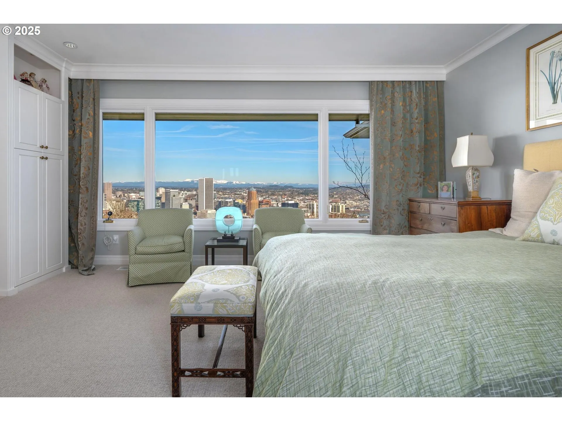 Perched above the city, this mid-century masterpiece has been meticulously remodeled with no detail overlooked. Nestled privately down a long driveway, the home welcomes you with breathtaking, panoramic views of the Portland skyline and surrounding mountains. A seamless blend of timeless design and modern luxury, the home offers a sophisticated and serene lifestyle.The oversized deck is perfect for taking in 180-degree views, while the tranquil Japanese-inspired gardens below, designed by Kurisu, provide a peaceful retreat. The expansive primary suite is a true sanctuary, featuring a walk-in closet and a spa-like bathroom with heated floors. With mostly main-floor living, the primary suite and secondary laundry space are conveniently located on the first floor. The lower level offers a beautiful secondary bedroom suite, a sauna, an impeccably designed wine cellar, a family room, workout space, and additional laundry facilities. Other highlights include a 4-car garage, generator, and sleek, sophisticated finishes throughout. This home is an unparalleled blend of luxury, comfort, and style in one of Portland’s most coveted neighborhoods. [Home Energy Score = 4. HES Report at https://rpt.greenbuildingregistry.com/hes/OR10235971]