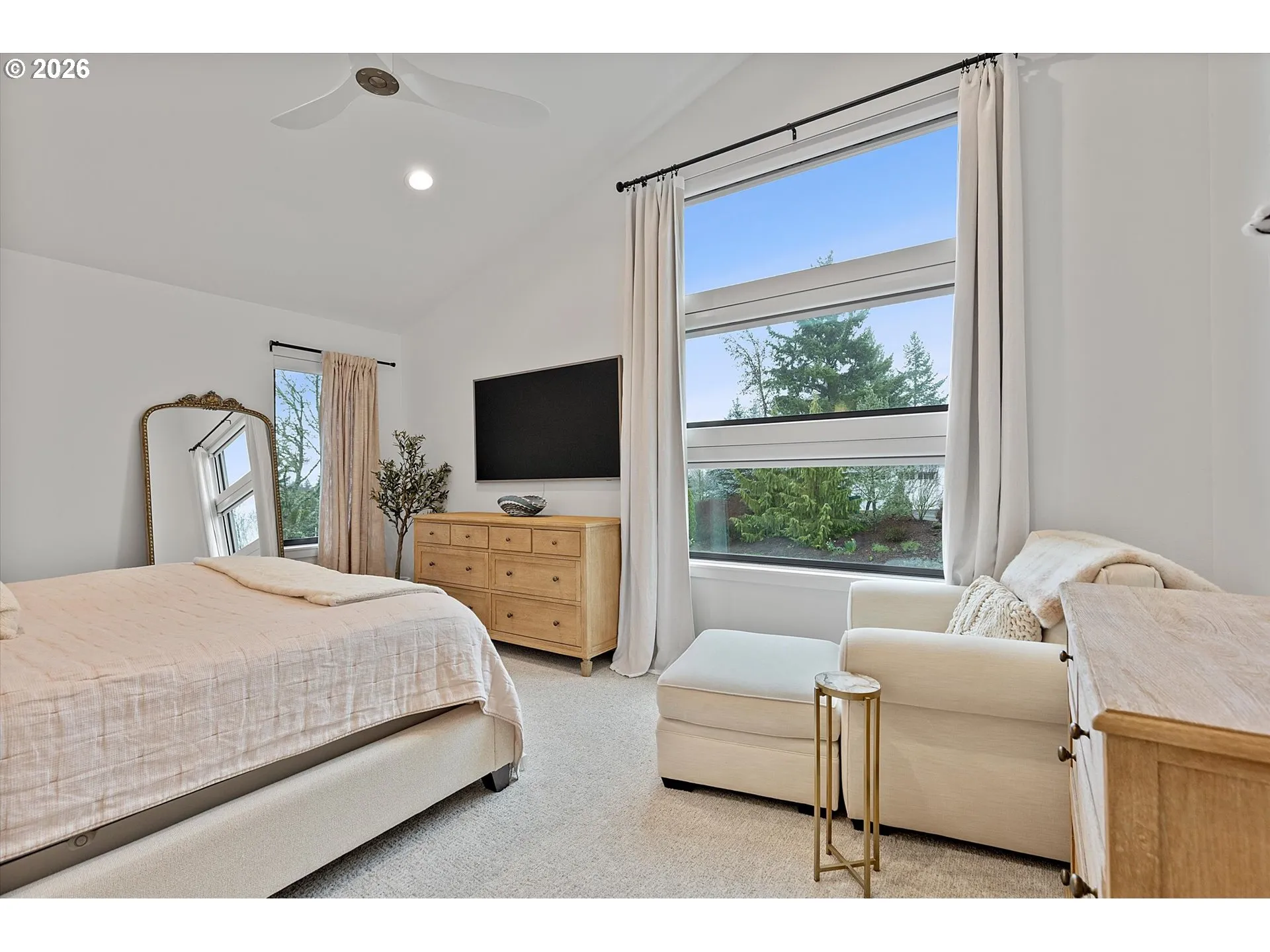 2024 Custom Modern Home on 1 Acre in an exclusive private neighborhood. Experience luxury and thoughtful design in this stunning custom-built modern home set on a private 1-acre lot in the heart of Cooper Mountain with no HOA. Showcasing striking curb appeal and original architectural design, this home was built with meticulous attention to detail and crafted to blend style, comfort, and functionality. At the heart of the home is the gourmet chef’s kitchen, featuring double islands that seamlessly connect the eating and entertaining areas. High-end finishes include waterfall quartz countertops, custom cabinetry, a gas range, water station, and a separate butler’s pantry, making it ideal for hosting and everyday living. The open-concept main level is highlighted by vaulted ceilings and expansive windows, filling the space with natural light while offering beautiful views of the surrounding trees and spacious yard. Indoor and outdoor living flow effortlessly to a brand-new deck, perfect for relaxing or entertaining. The main residence offers 4 bedrooms & 5 full bathrooms, while a separate living quarters located along the back of the spacious 3-car garage includes an additional room, full bathroom, & kitchen area—ideal for guests, extended family, or flexible living arrangements. Spacious owner’s suite has vaulted ceilings wall of windows & remote controlled blinds and closet systems. Designed with modern structural integrity and efficiency in mind, the home includes upgraded earthquake beams, floating stairs, a vaulted loft, and two tankless water heaters, providing both cutting-edge comfort and energy efficiency. Outside, the established property offers space to enjoy nature with a 12’ x 30’ fenced garden area, chicken coop/shed, and a dream treehouse, creating a unique blend of luxury living and rural charm. Meticulously maintained and carefully planned, this one-of-a-kind property is a hidden gem in this sought-after Cooper Mountain private community.