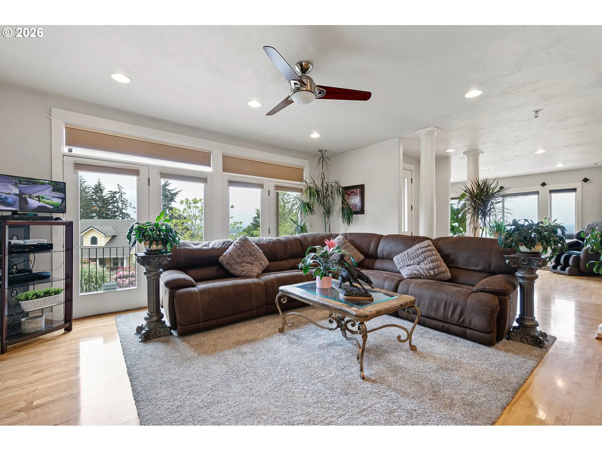 Set on a beautifully landscaped, nearly ½-acre lot, this exceptional residence offers refined living with warmth and comfort at every turn. Sweeping views unfold from expansive decking, creating a seamless indoor-outdoor lifestyle. With four bedrooms, three full baths, and over 3,500 square feet of living space, a multitude of functional living options are possible. Evenings are best spent gathered around the fire pit, surrounded by mature landscaping and peaceful privacy. Inside, formal living and dining rooms provide an elegant backdrop for entertaining while maintaining an inviting ambiance, highlighted with marble floors. Soak in sweeping city views from the comfort of your living room or private patio. The gourmet kitchen is thoughtfully appointed with granite countertops, a 5-burner Thermador cooktop, double ovens, hardwood floors, pantry, and a sunlit breakfast nook — perfectly designed for both elevated hosting and everyday enjoyment. The main-level primary suite serves as a private retreat, featuring a beautifully finished bath with granite counters and tile flooring. A dedicated office/den on the main level offers ideal work-from-home flexibility, while a lower-level computer nook and expansive upper-level bonus room provide versatile spaces for media, fitness, or guest accommodations. Lower-level living space with private entrance and secondary kitchenette – ideal for multigenerational living. A rare offering that balances luxury finishes, flexible living spaces, and breathtaking views — all on a generous homesite convenient to recreation, hiking trails, and amenities!