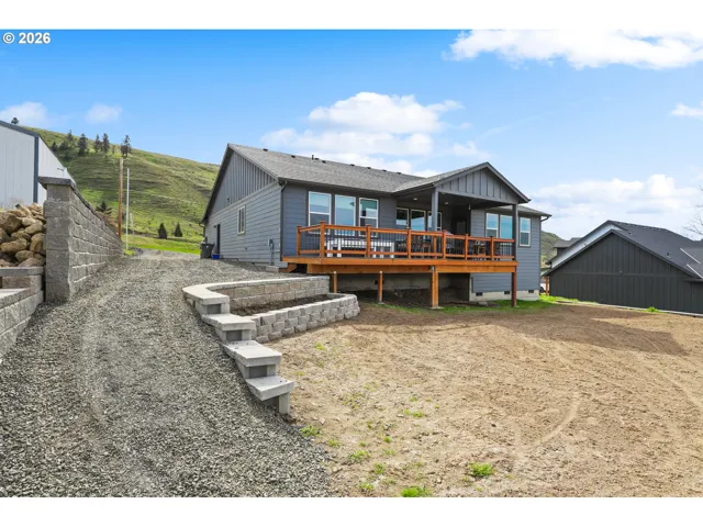 In many ways one might say this home is better than brand new. The seller has made many additional improvements since the home was completed in 2019. A nice retaining wall in the backyard ensures the lawn or landscape the new owner desires will be level. Also adding a minisplit ductless heatpump in the garage so this work area is temperature controlled.There is a covered deck in the back to entertain and enjoy the view. A 50 amp breaker was installed and could be used for a hot tub if the buyer desires. This is located close to the extra long graveled RV parking space.This single-level, four-bedroom, two-bathroom home has a nice layout with multiple bedrooms situated along a common hallway to the living/great room. The spacious kitchen overlooks the great room and dining area, making it easy to visit while preparing meals. There is ample granite counter space and cabinets as well as an island for easy food preparation. Around the corner from the kitchen is the laundry room and access to the garage.The dining and living areas face north and have a lovely view of the Columbia River gorge and the City lights.The spacious primary suite has plenty of room for king-size furniture, an ensuite bathroom with a granite counter, soak tub and large shower. Through the bathroom you will find a nice size walk in closet.There is lots of storage in the unfinished space under the house and a man door access on the side of the house. Great space for garden tools or holiday decorations.With over 2000 square feet of living space all on one level this is a great value at $619,900.