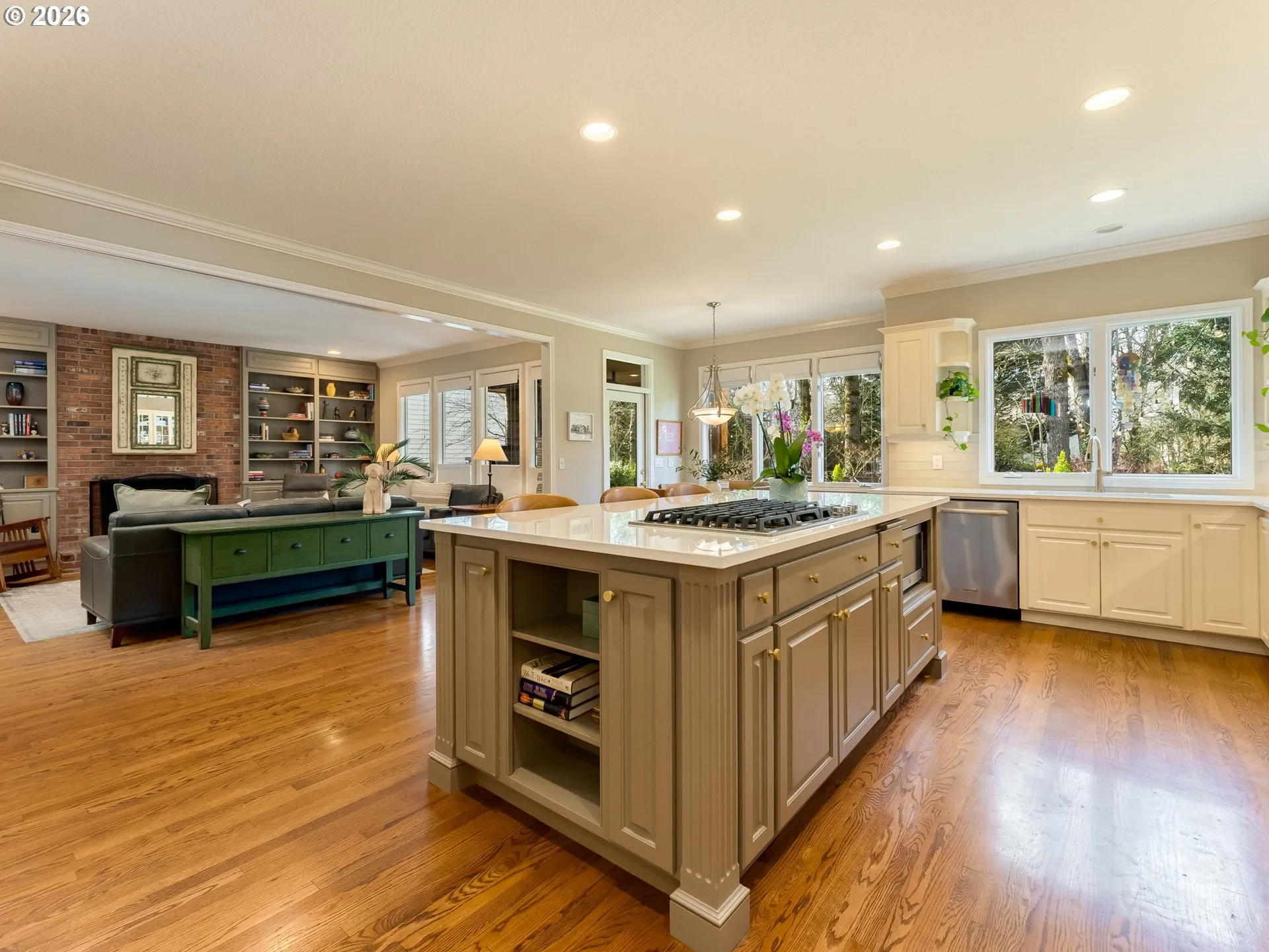 Timeless traditional on a cul-de-sac in coveted Westlake. This one-owner, custom-built home by Schollander Development is making its first-ever appearance on the market! A rare opportunity offering quality construction & enduring appeal. Featuring 5 generously sized bedrooms (4 w/ walk-in closets), 3.5 bathrooms, & a dedicated main-level office w/ custom built-ins. The entry captivates w/ a grand staircase & soaring ceilings. Red oak hardwoods & 9’ ceilings create understated luxury. The formal living room flaunts a gas fireplace & French doors opening to your private patio. The dining room delivers a classic setting for entertaining. The remodeled chef’s kitchen showcases quartz countertops, abundant cabinetry w/ brass hardware, an inviting island w/ a 5-burner gas cooktop, an informal dining area, coffee nook, & oversized pantry. The kitchen opens to an inviting family room w/ a gas fireplace & built-ins. Ideal for everyday living. The remodeled laundry includes tile flooring, generous workspace, & an ADA-compliant walk-in shower. Perfect for pets, guests, & post-outdoor use. The generous primary offers 9’ ceilings, a large walk-in closet, & an expansive ensuite w/ a unique opportunity to create the retreat of your dreams. Two bedrooms share a Jack-&-Jill bath, while the 4th is located across from a full bath—ideal for guests. A back staircase provides convenient secondary access. The outdoor oasis is designed for year-round enjoyment, featuring two covered patios w/ tongue-&-groove cedar ceilings & built-in heat lamps. An outdoor kitchenette includes a gas fireplace, built-in BBQ, & refrigerator. A Trex deck overlooks the tranquil greenbelt, complemented by a paver patio & water feature, all surrounded by lush, mature landscaping. An oversized 3-car garage completes the home. On a sought-after street near parks, summer concerts, shopping, dining, freeways, & downtown Lake Oswego, in the highly rated LO School District.