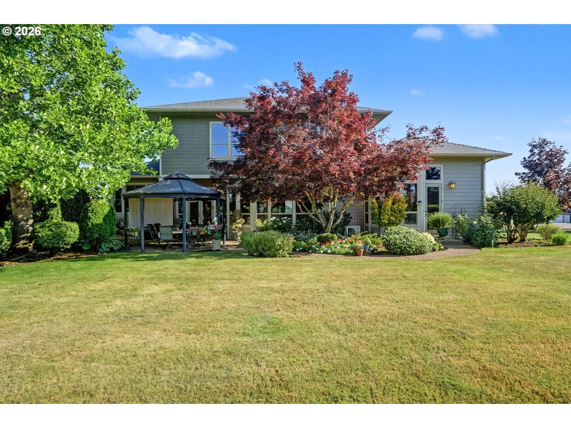 Now reintroduced! Sitting on over half an acre within Stayton city limits, this home delivers scale, privacy, and established landscaping near downtown amenities. A light-filled entry leads to generous living spaces, a built-in office, and a gourmet kitchen with center island. Upstairs en-suite bedrooms feature walk-in closets and dedicated mini-split systems. Covered outdoor area and three-car garage. Minutes to downtown, hospital services, Hwy 22, and under 20 minutes to Salem.