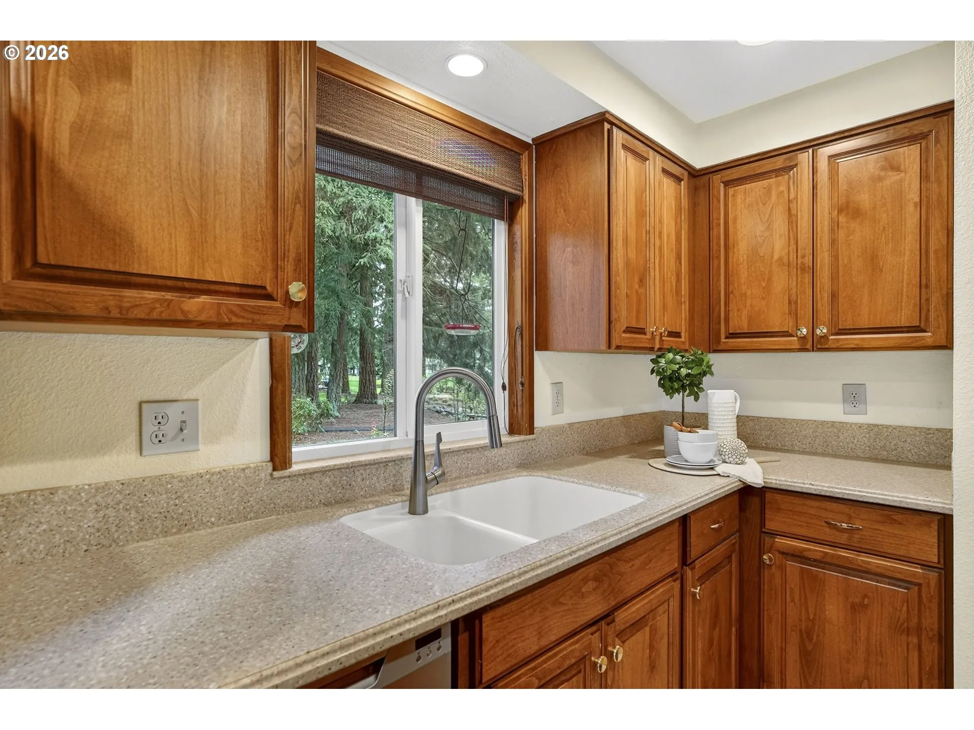 Charming ranch at the end of a quiet cul-de-sac with beautiful pond views. This home features a true primary with an ensuite with two additional bedrooms and another full bathroom. In the kitchen you will find beautiful Corian counter tops, stainless steel appliances, and view of the pond. A formal dining and large family room offers room for entertaining and relaxing with family and friends. Step through living room sliding glass doors into a 9 x 12 floor to ceiling glass “Sun and Shade” Four Season Sunroom (2019 – $33K) with unobstructed views of the pond and water feature while you sip your morning coffee or curled up with a good book. Additional features include vinyl windows throughout, forced air heat, heat pump for cooling, and interior laundry. Close to shopping, schools, and walking trails. HOA covers yard, roof, gutter, exterior paint and exterior maintenance. There is a secure fenced area where the residents of Pinebrook can park their RVS for a fee. Welcome Home!