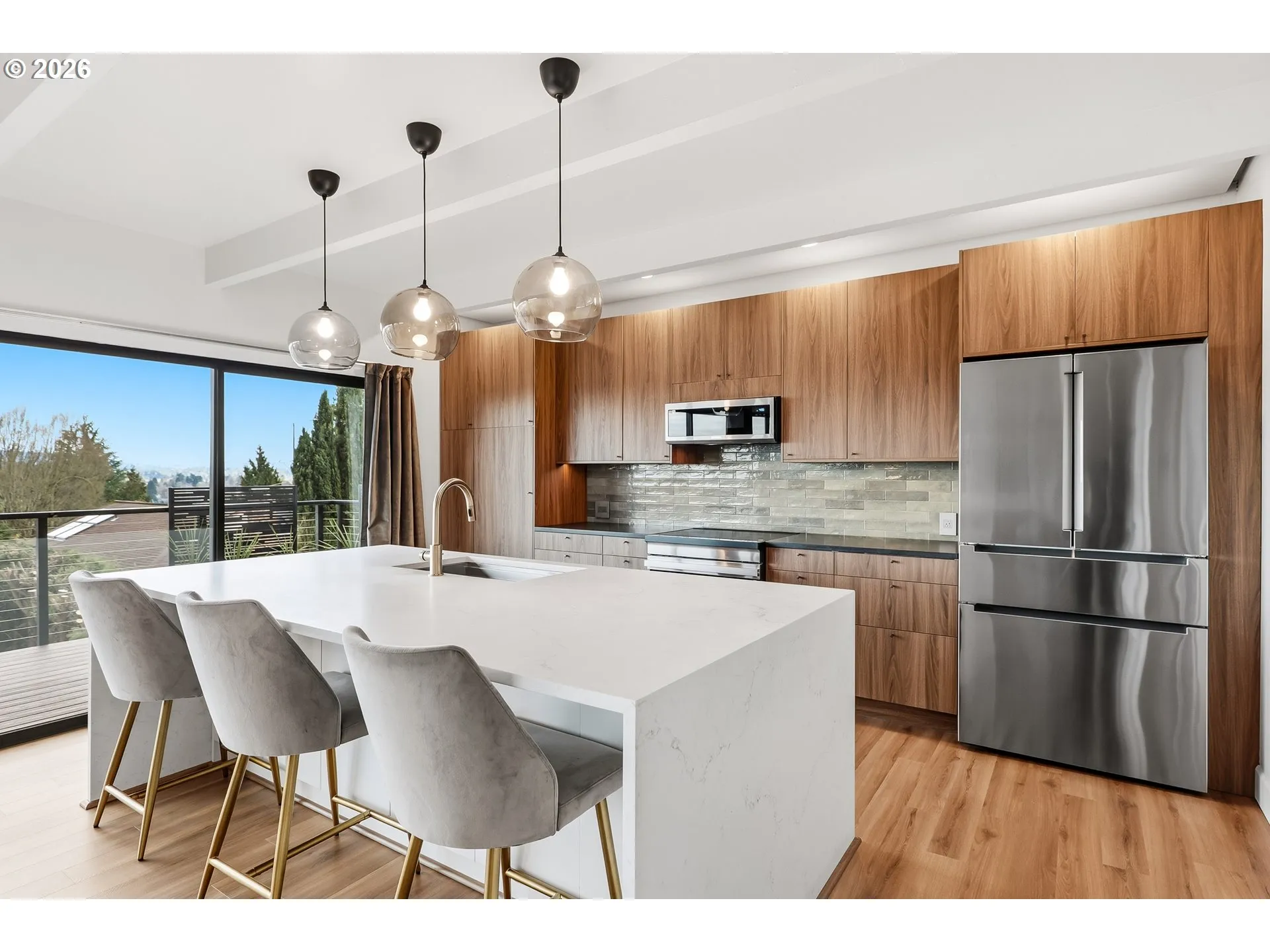 Loft-Inspired Mid-Century Modern with Panoramic River & Mountain Views! Enjoy stunning Willamette River and Mt. Hood vistas with both sunrises and sunsets. This updated mid-century modern home features an open-concept layout filled with natural light, along with a renovated kitchen, new appliances, cabinets, and floors. Architectural highlights include open-beamed ceilings and floor to ceiling windows. Additional updates include newer roof, siding, paint and more. Ideally located just above John’s Landing, with close proximity to restaurants and shopping, and only minutes from Downtown Portland, the Waterfront, and OHSU.