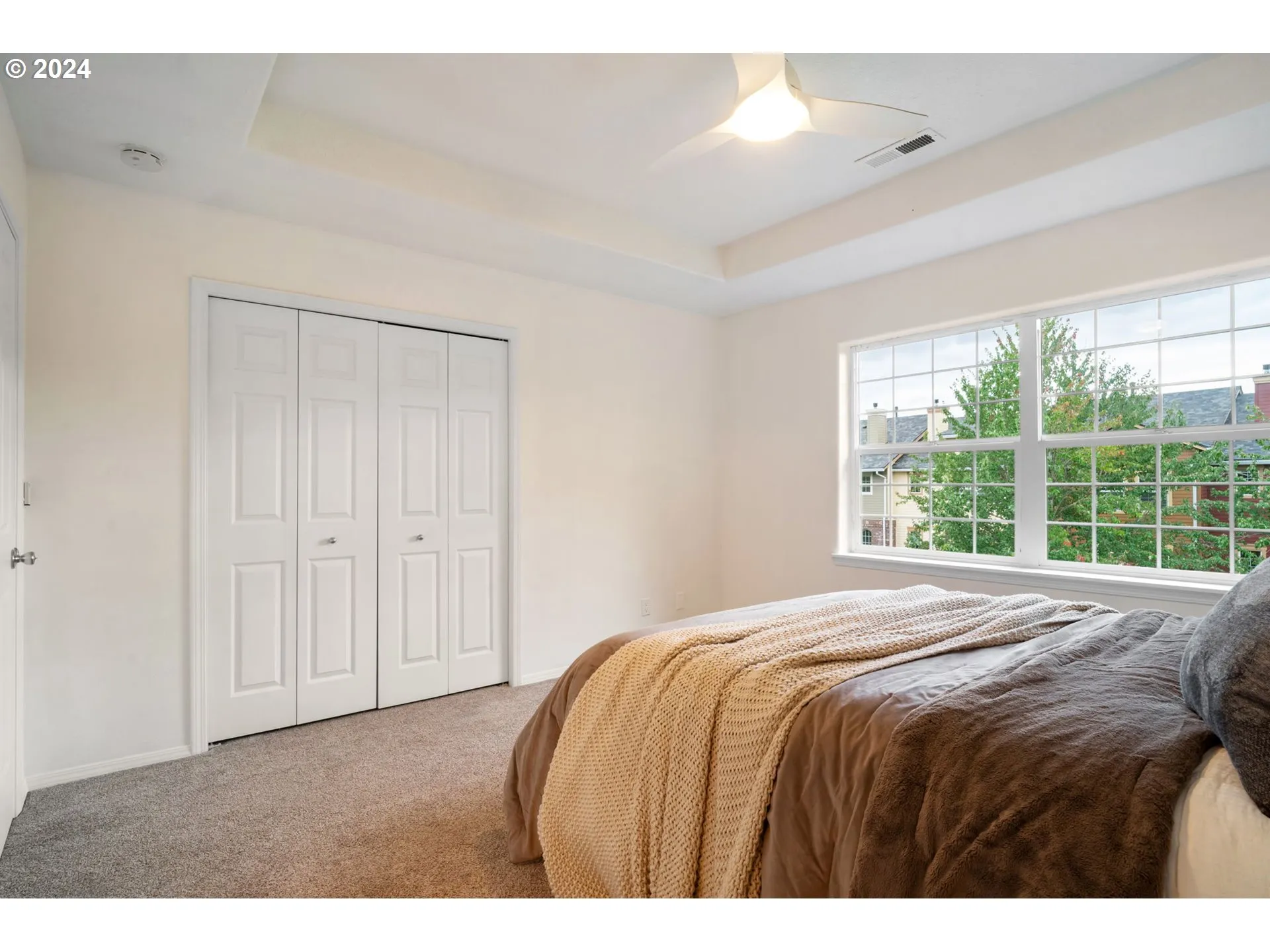 Beutifully updated Cratman-style townhome, featuring a brick front and a cozy front courtyard. 1st floor includes a 2-car attached garage and a den/office with bathroom, perfect for working from home or use as a study space. The second floor is the main living area, consisting of a spacious, open-concept layout. Here, you’ll find the living room with fireplace, kitchen that includes stainless steell appliances, butcher block counter tops, eating bar, pantry, with a layout that integrates well with the living and dining space, dining room with wood floor, and a half bath for convenience. On the third floor, there are two master suites, each with its own en-suite bathroom, providing privacy and comfort. These master bedrooms are ideal for a roommate setup or simply extra guest space. The home’s thoughtful design blends Craftsman charm with modern amenities, creating a comfortable and functional living space. [Home Energy Score = 9. HES Report at https://rpt.greenbuildingregistry.com/hes/OR10233466]