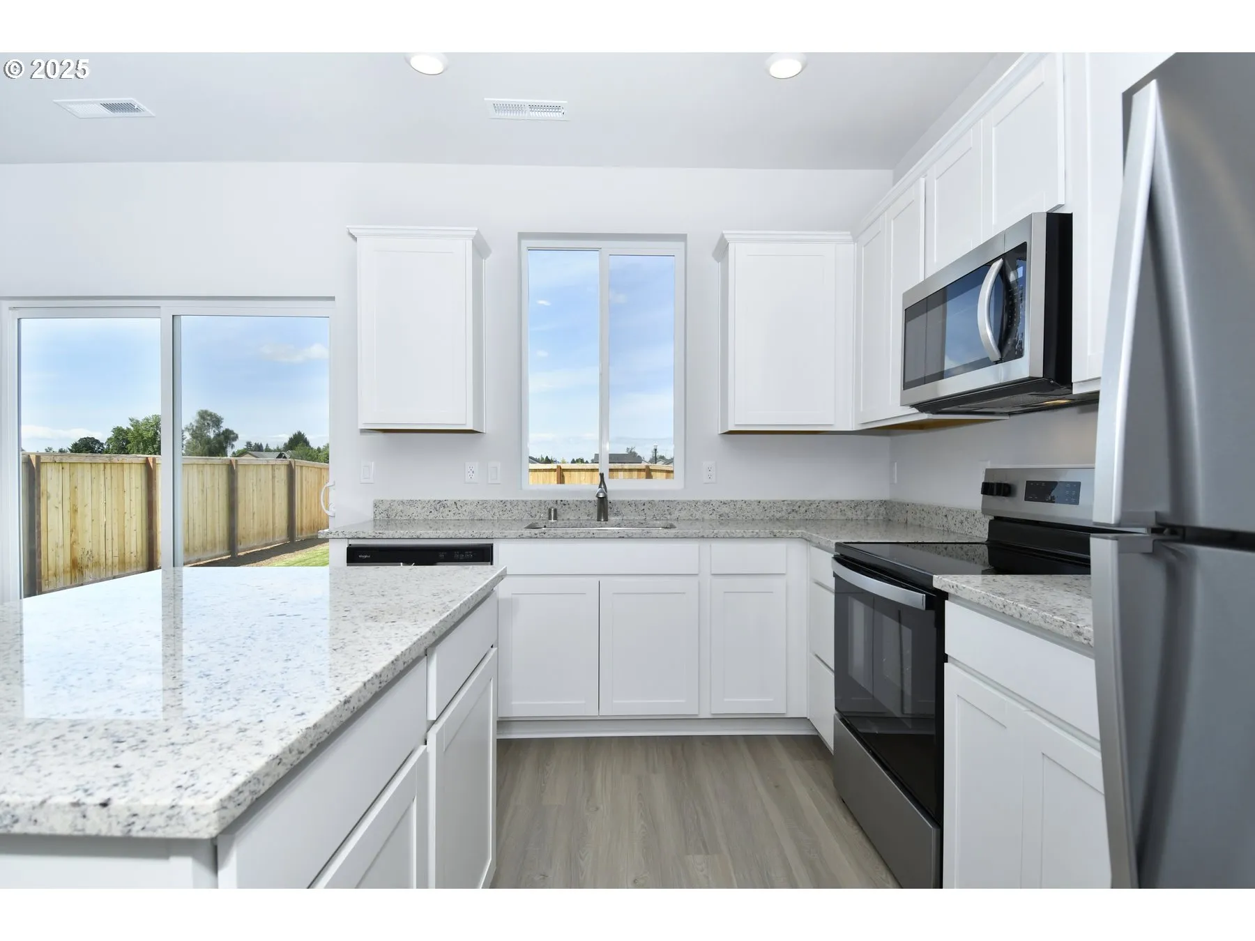 Experience the comfort and functionality of this thoughtfully designed three-bedroom home. The open-concept main level features a spacious family room and dining area that flow seamlessly into the chef-inspired kitchen, complete with granite countertops, an oversized island, sleek cabinetry, an oversized island, and a full-suite of stainless steel Whirlpool appliances. Upstairs, a generous loft adds flexible living space, while the primary suite offers a private retreat with a walk-in closet and a luxurious bathroom featuring a glass enclosed shower and elegant vanity. Additional conveniences include an upstairs laundry room and a second full bath located upstairs.