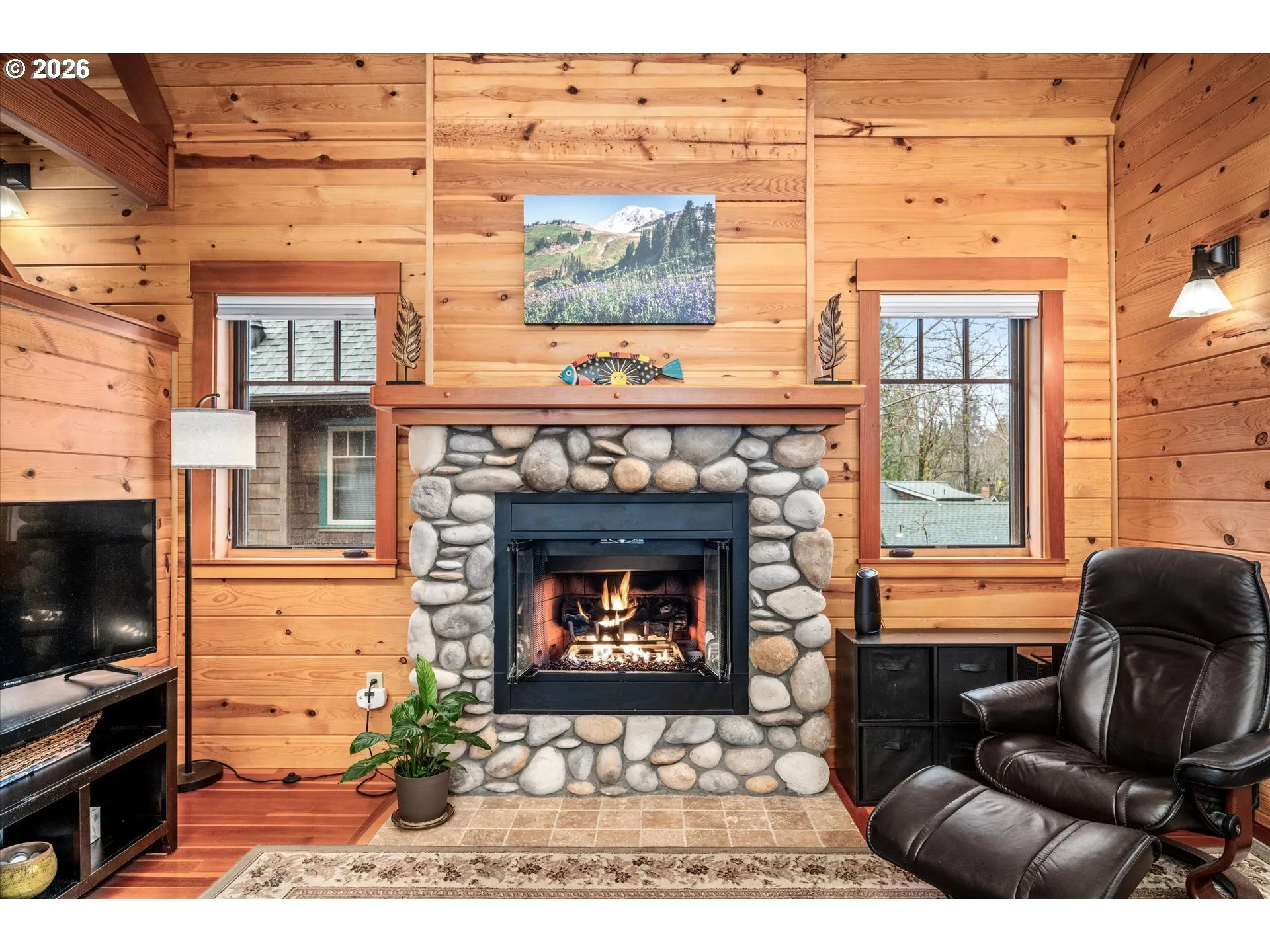 Elevated river-view cabin in the historic Log Cabin Inn community along the scenic McKenzie River corridor. Positioned safely above the flood zone, this well-maintained 2-bedroom, 2-bath cabin enjoys sweeping views of the river, surrounding meadows, and Cascade foothills. Inside, warm pine interiors, natural wood floors, and a river-rock gas fireplace create a welcoming mountain retreat. The full kitchen and screened deck offer comfortable spaces for relaxing, dining, and enjoying the peaceful setting. A detached one-car garage provides convenient storage for vehicles and outdoor gear. Owners enjoy approximately 900 feet of shared McKenzie River frontage, expansive meadow areas, and community fire pits — offering the experience of river living without the maintenance of a private riverbank. HOA dues of $2,205 per year include water, community septic, garbage, snow removal, and common area maintenance. This property offers a versatile opportunity for personal use, investment, or as a great option for buyers completing a 1031 exchange. It also has strong potential as a short-term rental, with similar nearby cabins renting for around $255 per night and estimated potential gross annual income between $40,000 and $55,000 depending on seasonality and management (buyer to verify HOA and local regulations). Located minutes from hiking, rafting, fishing, golfing, hot springs, dining, and Hoodoo Ski Resort, this is a rare opportunity to own a low-maintenance river retreat in one of Oregon’s most iconic recreation corridors.