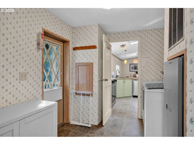 Welcome to Florentine Estates, a sought-after 55+ gated community offering a peaceful, secure, and vibrant coastal lifestyle in beautiful Florence. This well-maintained 1,780 sq ft manufactured home is ideally situated on a large lot with a spacious and very private backyard—perfect for relaxing, gardening, or entertaining guests. Inside, you’ll find a bright and inviting interior filled with natural light and thoughtfully designed for comfortable living. The home features two generously sized bedrooms and two full bathrooms, along with an open and flexible floor plan that allows you to tailor the living and dining spaces to your needs. Meticulously cared for, the home showcases attractive and durable luxury vinyl plank (LVP) flooring throughout, offering both modern style and easy maintenance. The kitchen flows seamlessly into the main living areas, creating an ideal setting for everyday living or hosting friends and neighbors. Large windows enhance the warm and welcoming feel of the home. A detached Over sixed one car garage and a large 2-car carport offers excellent convenience along with ample room for storage, hobbies, or a workshop space. The lot location adds to the sense of openness while maintaining backyard privacy with close proximity to the club house. Residents of Florentine Estates enjoy access to community amenities and a friendly atmosphere designed for an active and relaxed lifestyle. Located just minutes from the beach and the historic Old Town district of Florence, you’ll have easy access to local shopping, dining, and coastal recreation. Move-in ready and exceptionally cared for, this home presents a wonderful opportunity to enjoy comfort, convenience, and community in one of the area’s most desirable 55+ neighborhoods. Don’t miss your chance to make it yours!