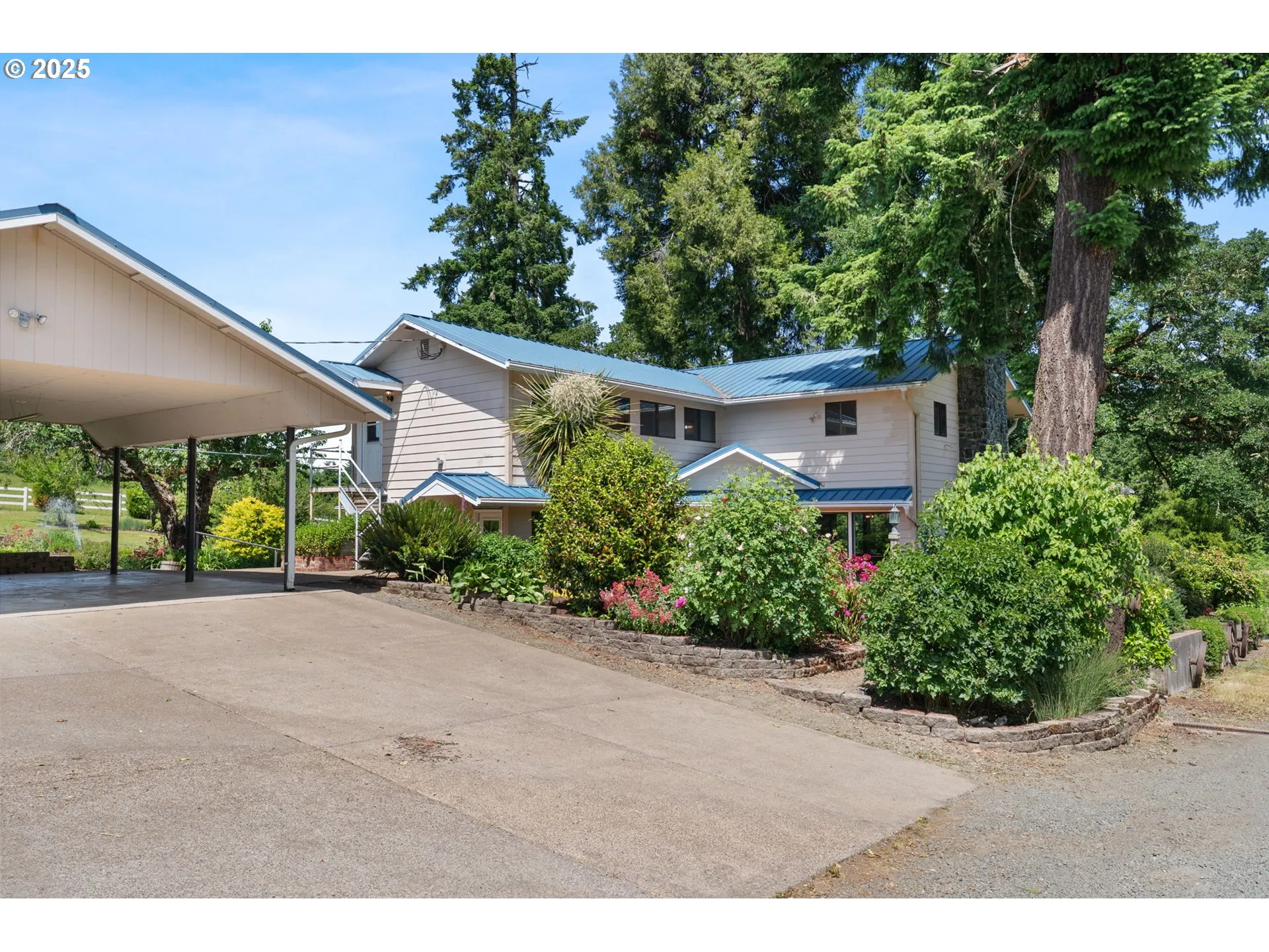 Discover your dream home in this rare Oregon Ranch, now on the market. Spanning an impressive 148.08 acres of tranquil, park-like land, this property offers the perfect blend of country living and convenience, just minutes from downtown Cottage Grove, Cottage Grove Lake, and I-5 access. Nestled at the end of a private county road, you’ll be greeted by a gated entry and one of 2 large ponds that enhance the serene atmosphere.This stunning estate presents endless possibilities, making it an ideal location for a beautiful wedding venue or a sprawling vineyard. Inside, you will find a tastefully updated home featuring four bedrooms and four bathrooms, with over 3,263 square feet of living space. The interior boasts luxurious vinyl plank flooring throughout the living areas, creating a modern and inviting ambiance. The spacious kitchen is a chef’s dream, complete with custom cabinets, granite countertops, and a generous island. Natural light floods the living room through oversized windows, complemented by a cozy wood-burning fireplace, perfect for relaxing evenings. The family room opens onto a brand-new deck that overlooks the 2 picturesque ponds and views of the pasture. Upstairs, 3 generous guest bedrooms share a full bathroom conveniently located in the hallway. The owner’s suite is a true retreat, featuring its own private balcony and a spa-like ensuite bathroom. Additionally, the upstairs den is designed for entertaining, equipped with exterior access and a fun pool table. Outside, you’ll find two charming 100 year-old barns, adding character to the property. The oversized detached garage adjacent to the house offers the potential for conversion into a studio or an ADU. A well-sized barn further up the road, complete with cross fencing! This exceptional property is sure to impress. Showings are by appointment only contact your broker today to schedule a private tour!