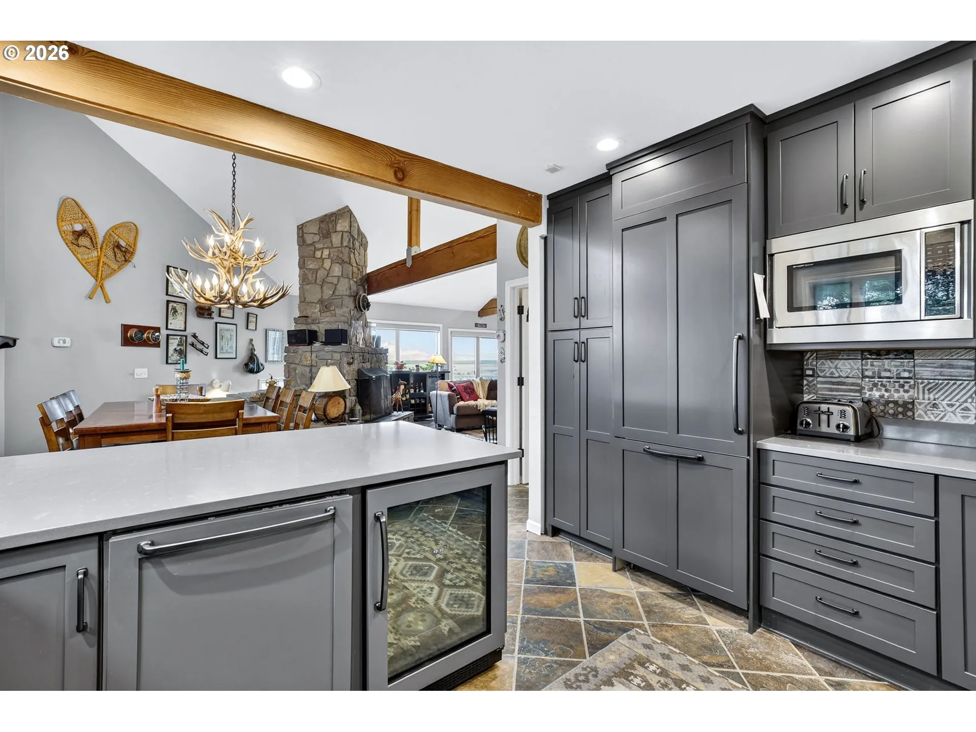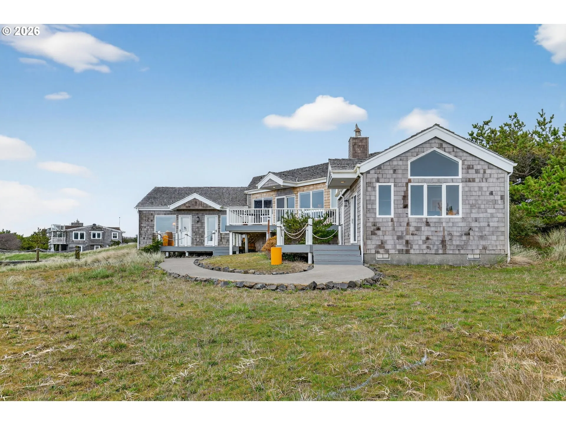 Luxury Turn-Key Fully Furnished Oceanfront Retreat perfectly positioned along an executive links golf course within an exclusive gated community of luxury homes. This stunning coastal estate blends privacy, elegance, and breathtaking natural beauty. Inside, soaring beamed vaulted ceilings and expansive windows showcase sweeping ocean, beach, and golf course views while filling the home with natural light. At the heart of the home, a custom stone gas fireplace provides warmth and a sophisticated focal point. The recently remodeled kitchen features quartz countertops, top-of-the-line custom cabinetry, an Italian-imported gas range, and a wine refrigerator, complemented by slate flooring throughout—perfect for everyday living and entertaining. Brand new Hunter Douglas blinds throughout and a brand new water heater. Step outside to enjoy the new Trex deck and new siding, ideal for morning coffee, sunset gatherings, or entertaining while taking in panoramic vistas. Each bedroom offers private decks or view windows, creating serene spaces to enjoy the scenery. Offered fully furnished with custom pieces collected from world travels, final furnishings are negotiable upon acceptable offer. Listen to waves crash while watching eagles and local seabirds cruise the dunes, or stroll from your front door to the greens across the street. The home includes 4 bedrooms, 2.5 baths, direct beach access, and community amenities including pickleball, basketball, and tennis courts. Conveniently located near Astoria and Seaside, with an easy commute to Portland and Portland International Airport. Could be used as a short-term rental; buyer to work with the city and HOA on permitting.Rarely does a property combine picture-perfect scenery with distinctive, custom touches, including beamed ceilings, a custom stone gas fireplace, private bedroom decks, a new Trex deck, and new siding, creating a one-of-a-kind coastal retreat. Ocean horizons await.