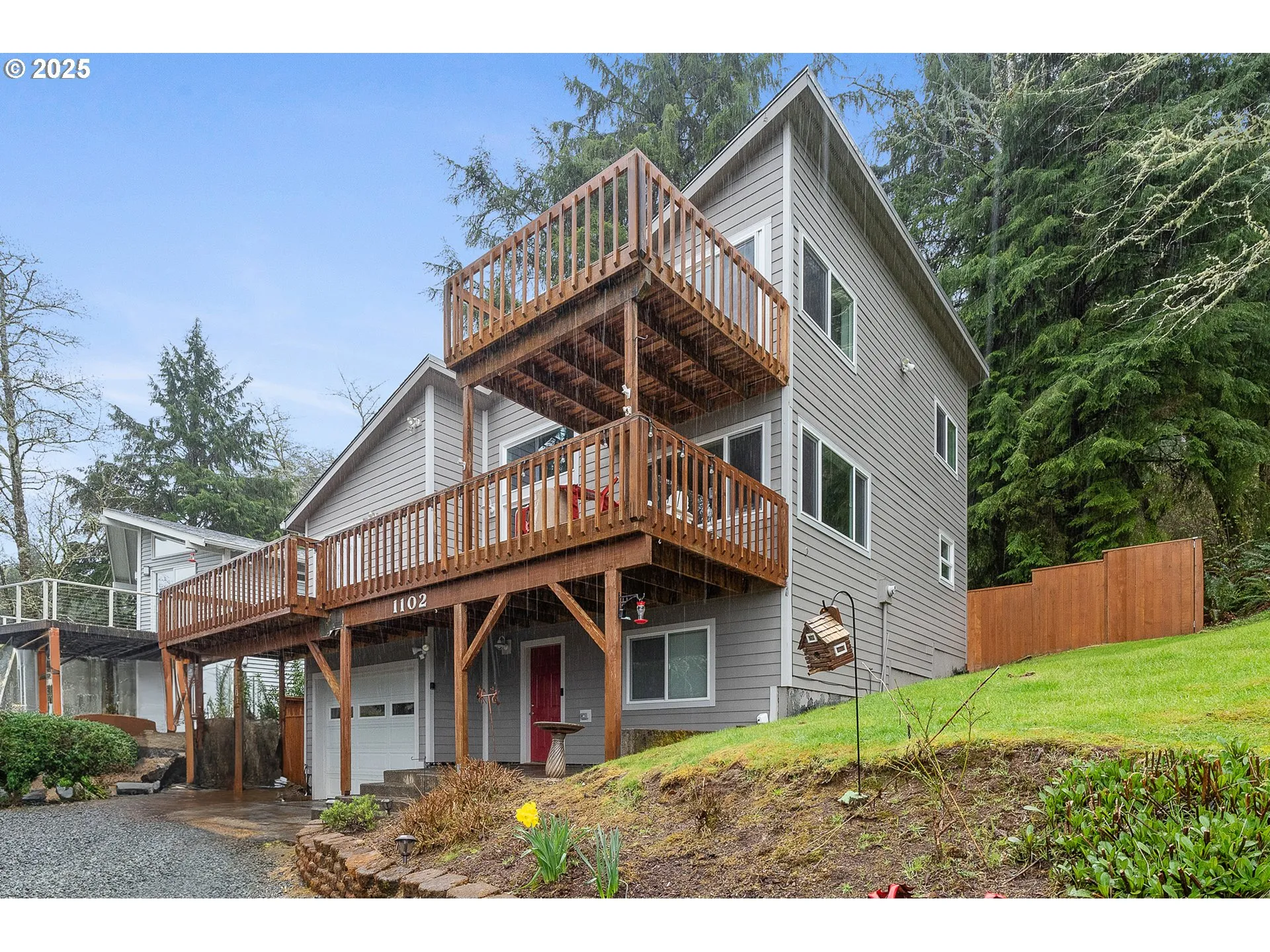 Tucked on a quiet street just a short stroll from downtown Rockaway Beach, peek ocean-views from a nest that offers space, flexibility, and a layout that works well for everyday living or a coastal getaway. Close to town and the seven miles of sandy shoreline Rockaway is famous for, the setting strikes a great balance between convenience and calm. A well-maintained gem, the home features a new roof (2024), freshly repainted deck, and a brand new furnace, so the big-ticket items are already handled: letting you spend your first years simply settling in and enjoying your new place.Inside, the multi-level floorplan provides room to spread out. Two bedrooms and a full bath are located on the lower level, while the main floor offers an open living, dining, and kitchen area, a cozy fireplace gathering space, and a full bathroom alongside the main bedroom… which opens directly to the back deck! Upstairs, a double loft-style space with balcony access makes a great home office, reading nook, or creative retreat, with ocean glimpses as a bonus.Out back, the fully fenced yard is easily accessed from the deck off of the kitchen- an ideal spot to grill while the pups shake off the sand. Out front, multiple decks give you options for s’mores around the fire pit, sunbathing, or taking cover from the morning mist while sipping coffee in the salt air. You’re close enough to walk to shops, restaurants, and local events, while still enjoying the ease of a low-traffic side street away from the fray.Whether you’re looking for a full-time home or a flexible coastal retreat, this property offers practical updates, a livable layout, and a location that feels both connected and relaxed.