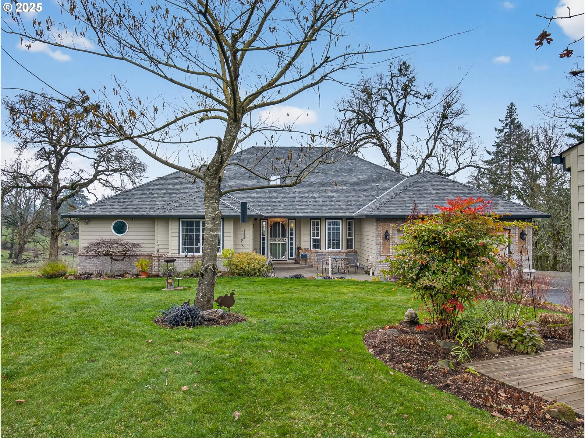 Come home to your dream property—this one truly has everything you’ve been looking for. The views, the outbuildings, the single-level living! Located on a quiet dead-end road just 5 miles to Molalla, 11 miles to Silverton and less than an hour to PDX. Fully fenced with an automatic gate and set among beautiful landscaping and mature oaks. Former owners used the property and outbuilding for a business, so the property features a large gravel driveway, plenty of parking, room for semi 3-pt turnarounds, and even a loading dock. The home offers 2,875 sq ft of one-level living with an amazing open floor plan great for entertaining. Two primary suites, 4 bedrooms, 3 full baths. A huge laundry room. A separate family room with barn door. 2 pantries for food and small appliances. LVT and carpet in 2020, stainless appliances in 2021, furnace and heat pump in 2022, plus tankless/propane hot water heater. The 500 gallon propane tank is owned. A quality Harmon pellet stove keeps things cozy. Enjoy the territorial views, wildlife, Mt. St. Helens, fireworks, and skydivers right from the back of the home. Covered back deck for year-round BBQs. Outbuildings include a 36X72 shop, 36X60 shop, A 24X52 barn with machine shed parking, two Conex container sheds with lean-tos, an 18X12 gazebo, chicken house, raised beds, fruit trees, and berries. Seasonal creek runs about 8 or 9 months of the year, and you might even find carnelian agates after a heavy rain. High-producing 50 gpm well with two brand-new pressure tanks. Timber deferral for lower taxes. Wired for backup generator. Home, radon, well potability, and septic inspections recently completed. Sale contingent on sellers finding suitable replacement property. Seller is a licensed Oregon Real Estate Broker.