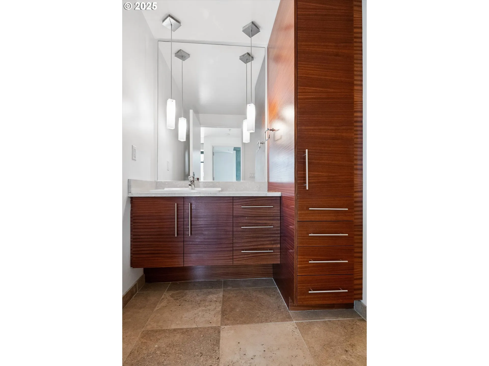 Step into this modern welcoming unit at Pacifica, perfectly nestled by the Willamette River and just steps from the Pearl District with a calmer serene vibe. The common area river-front terrace has private/effortless access to riverfront walking and biking paths. Inside, the home boasts penthouse-style floor-to-ceiling windows, granite counters, hardwood cabinetry, stainless steel appliances, and a deep soaking tub in a spa-like bath. A spacious 93-square-foot private deck extends your living space outdoors. The well-managed HOA includes water, sewer, gas, and cable TV, making for truly carefree living.