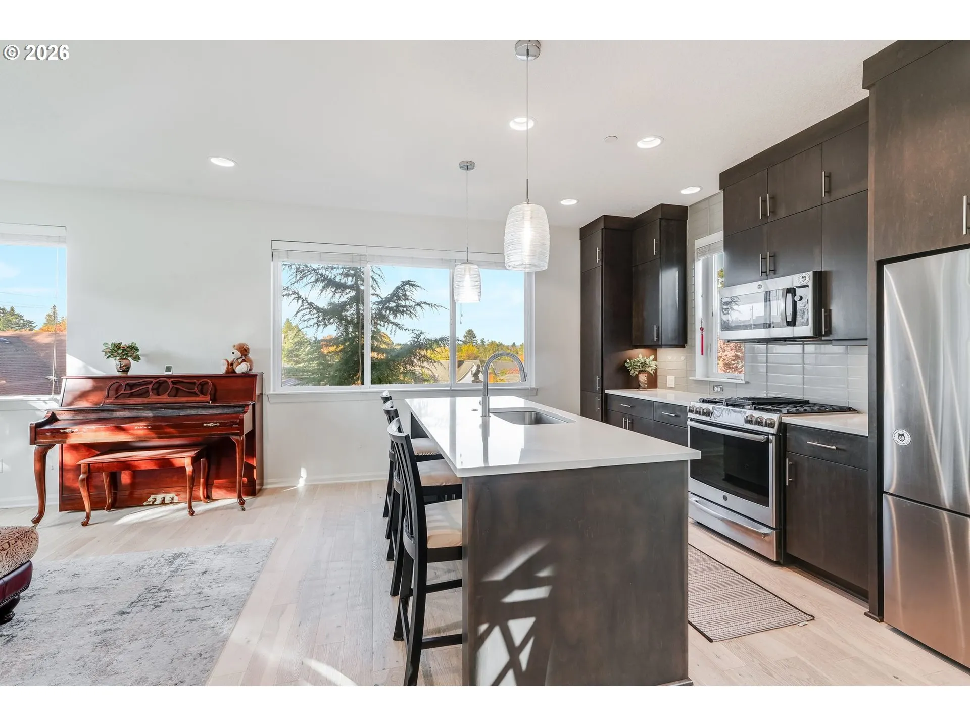Light-filled three-story condo offering 1,418 square feet of thoughtfully designed living space on a desirable corner lot in Northeast Portland. The entry level features a private bedroom with direct access to a fully fenced yard, perfect for pets, gardening, or private outdoor enjoyment. The second level is the heart of the home, showcasing an open-concept living area with large windows, spacious dining area, and kitchen with ample cabinetry and breakfast bar seating. The third level is dedicated to the primary suite, complete with a private bath and walk-in closet for added privacy and convenience.Additional highlights include in-unit laundry, an attached garage, and low-maintenance outdoor space. Situated in a quiet neighborhood close to parks, cafés, and major commuting routes, this home offers comfort, flexibility, and urban convenience.
