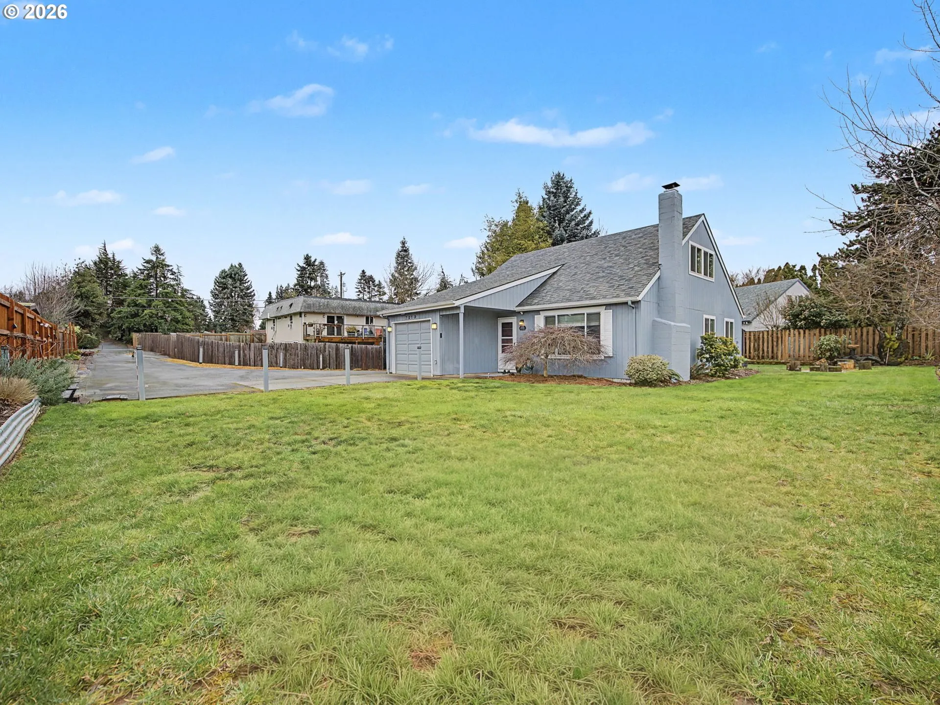 Tucked away down a quiet driveway on a generous lot, this light-filled home offers both privacy and comfort in a fantastic location. The inviting living room has vaulted ceilings, a cozy fireplace, and abundant natural light that creates a warm, welcoming atmosphere. The main-level primary bedroom features a spacious walk-in closet for easy living, while upstairs you’ll find two large bedrooms with vaulted ceilings and a full bath, perfect for guests, work-from-home space, or hobbies. Step outside and you’ll find a beautifully landscaped yard designed for relaxation, morning coffee in the fresh air, summer dinners under the covered patio, nights around the fire pit, and space to garden, play, or unwind. Also included are 10 different types of fruit and berry plants and trees that have already been established! A craftsman tool shed keeps everything organized so the outdoor space can continue to shine. Recent updates are interior paint, new LVP flooring, new kitchen quartz counter tops, and new dishwasher. New roof installed in 2021. Conveniently located near freeway access, parks, schools, shopping, and dining. This home truly combines comfort, updates, and location. A must see!