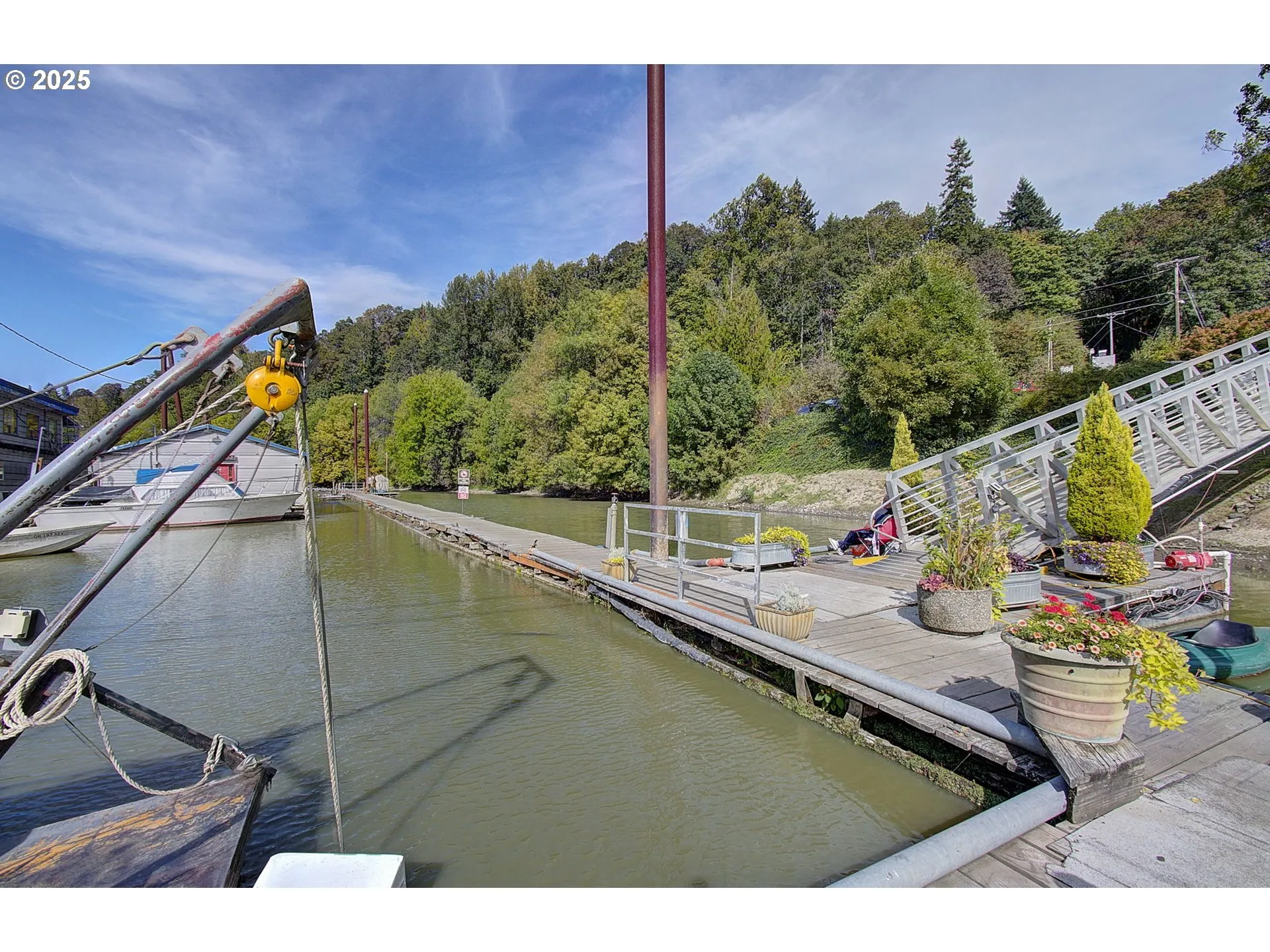 Unobstructed views abound! Come home to this beautiful 2-story floating home ideally located in Felida Moorage. This end-dock position offers panoramic, unobstructed views of Lake River stretching toward Vancouver Lake. Enjoy peaceful sunsets, birdwatching, fishing, and starry nights right from your own home. This home features 2 bedrooms and 2 bathrooms, a metal roof, durable vinyl siding, and updated log-and-stringer flotation. The main living area offers large windows that fill the space with natural light, and the cozy kitchen includes all appliances. The primary bedroom suite, with full window views of the water, features access to a covered upper deck—perfect for morning coffee or summer sunsets. Additional lower-level deck space is ideal for outdoor living. Wraparound decking includes access gates directly to the water, perfect for paddleboarding, kayaking, or boat access. Recent updates include a new sliding door, a new water intake pressure valve, and a new expansion tank installed in August 2025. Two large locking storage units provide easy access for seasonal and additional storage needs. Don’t miss this opportunity: life on your floating home with stunning sunset views on the water.