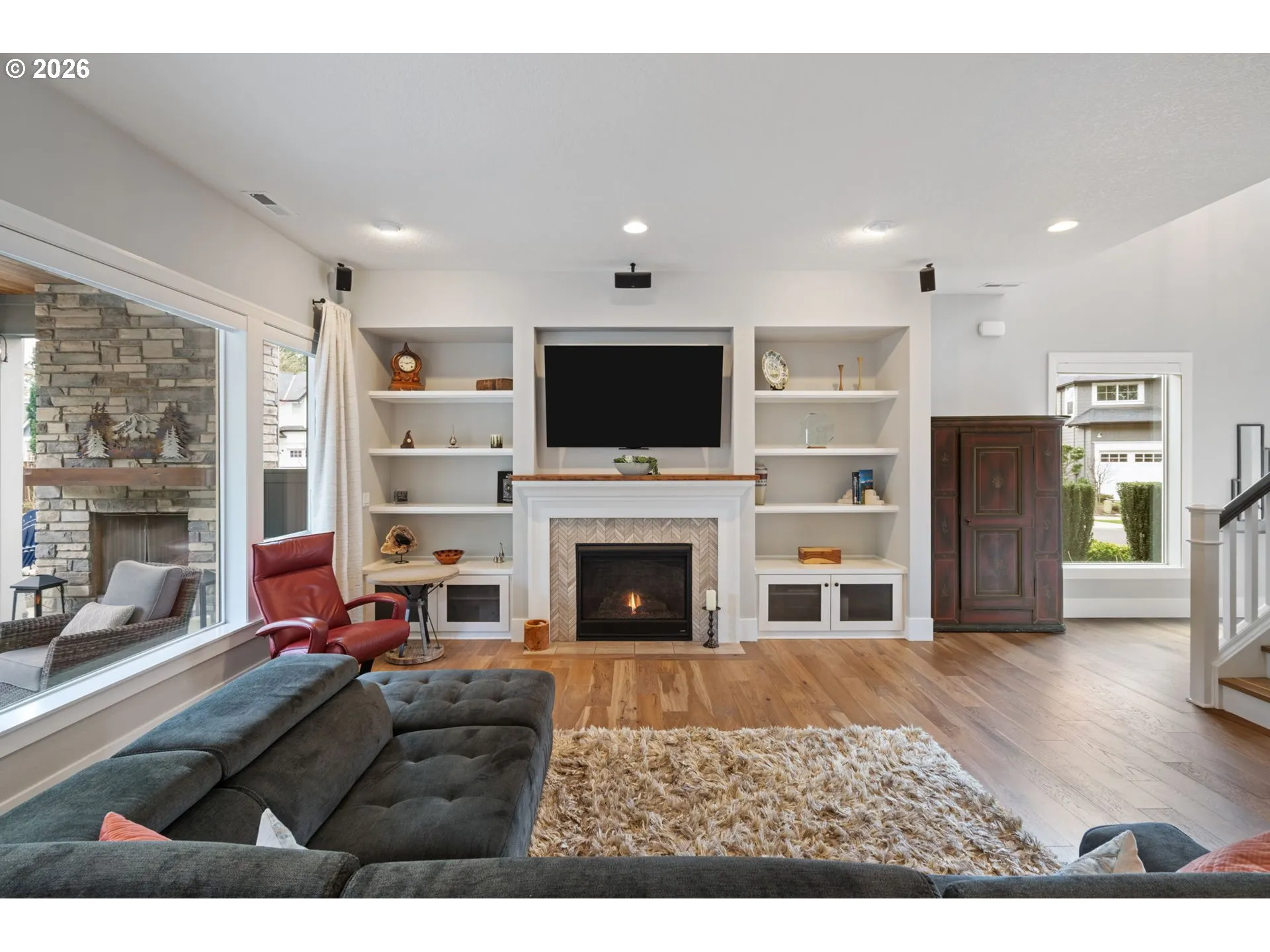 Welcome to this exceptional home in Wilsonville’s premier riverfront neighborhood, Renaissance Boat Club. This exclusive 33-home community offers private, gated access to a waterfront park and boat dock—complete with a dedicated boat slip for each residence. Embrace the river lifestyle and spend sun-soaked days cruising the Willamette, paddleboarding at sunset, or simply enjoying life by the water. Perfectly positioned on an expansive corner lot, this beautifully maintained home showcases professionally designed front and back landscaping that creates a true backyard retreat. Enjoy the soothing sounds of a custom water feature, unwind on the covered patio with its cozy fireplace, gather around the gas fire pit or relax in the hot tub — an outdoor setting designed for year-round enjoyment. Inside, the thoughtfully designed great room floor plan offers 5 bedrooms and 3 full bathrooms with quality upgrades throughout. The stunning kitchen is the heart of the home, featuring high-end stainless steel appliances, an oversized quartz island, a spacious pantry, and a charming ceramic farmhouse sink. Soaring 10-foot ceilings enhance the open-concept living area, where the kitchen flows seamlessly into the dining space and inviting living room with a gas fireplace. A main-level office, located across from a full bathroom, easily functions as a fifth bedroom—ideal for guests or multigenerational living. The lifestyle continues just beyond your doorstep, with Memorial Park next door offering miles of trails, playgrounds, athletic fields, a dog park, tennis and pickleball courts, basketball courts, sand volleyball, a skate park, frisbee golf, and more. This is a rare opportunity to own a meticulously cared-for home in one of Wilsonville’s most sought-after communities—where quality living meets the charm and recreation of the river.