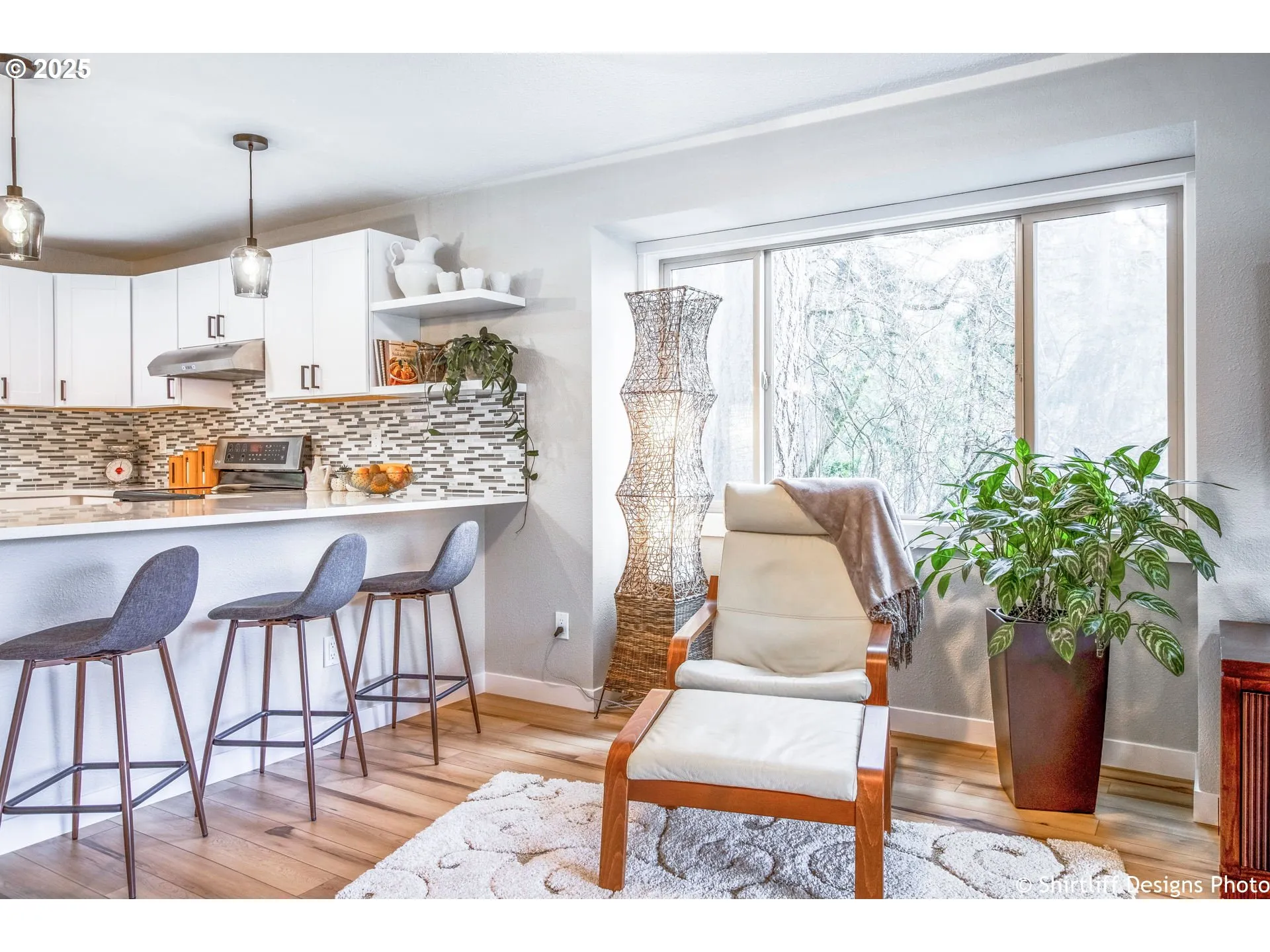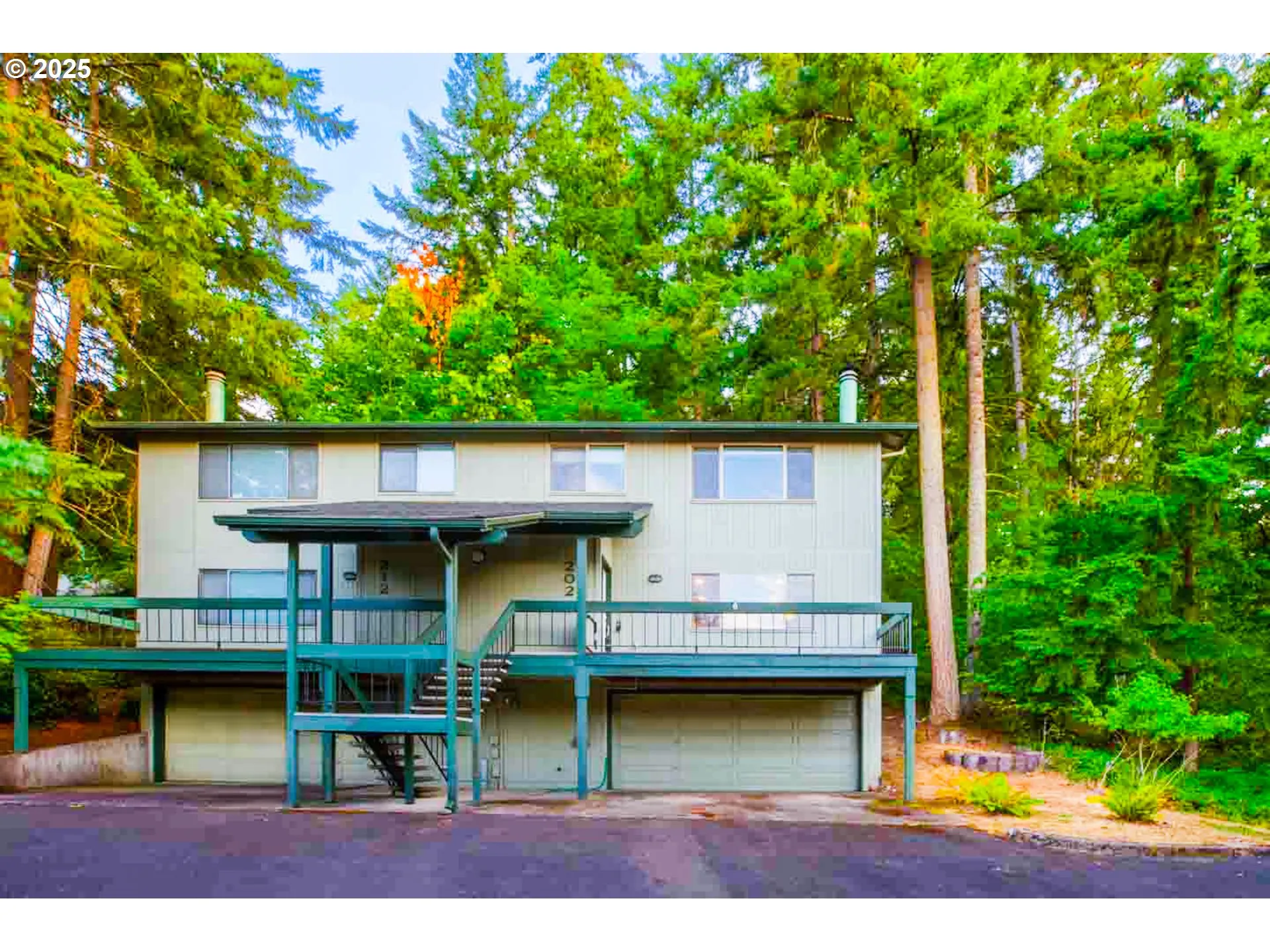 This beautifully updated end-unit townhome offers an exceptional blend of modern comfort and Northwest charm with three bedrooms, two and a half bathrooms, and an oversized 840 square foot garage. Designed for entertaining and everyday living, it features an open concept layout connecting the living room, dining area, and kitchen complete with quartz countertops, stainless steel appliances, updated cabinetry, and a cozy wood-burning fireplace. Recent updates include new flooring throughout and refreshed bathrooms, along with a bright, inviting kitchen and a new refrigerator. The primary suite is a private retreat with a walk-in closet, an oversized soaking tub, and its own deck, while two additional bedrooms provide generous space for family or guests. Outdoor living is a dream with three separate decks surrounded by beautiful views of trees and nature, offering a serene backdrop for morning coffee or evening gatherings. The monthly $425 HOA fee provides exceptional value as it covers exterior maintenance studs-out, including roof and siding, plus grounds maintenance, management, water & trash. Ideally located just 15 minutes from the University of Oregon and downtown Eugene, this home is near scenic hiking trails, bike paths, and excellent restaurants in the highly regarded 4J School District, including South Eugene High School. Enjoy easy access to parks, public transportation, and all the amenities that make this area so desirable.
