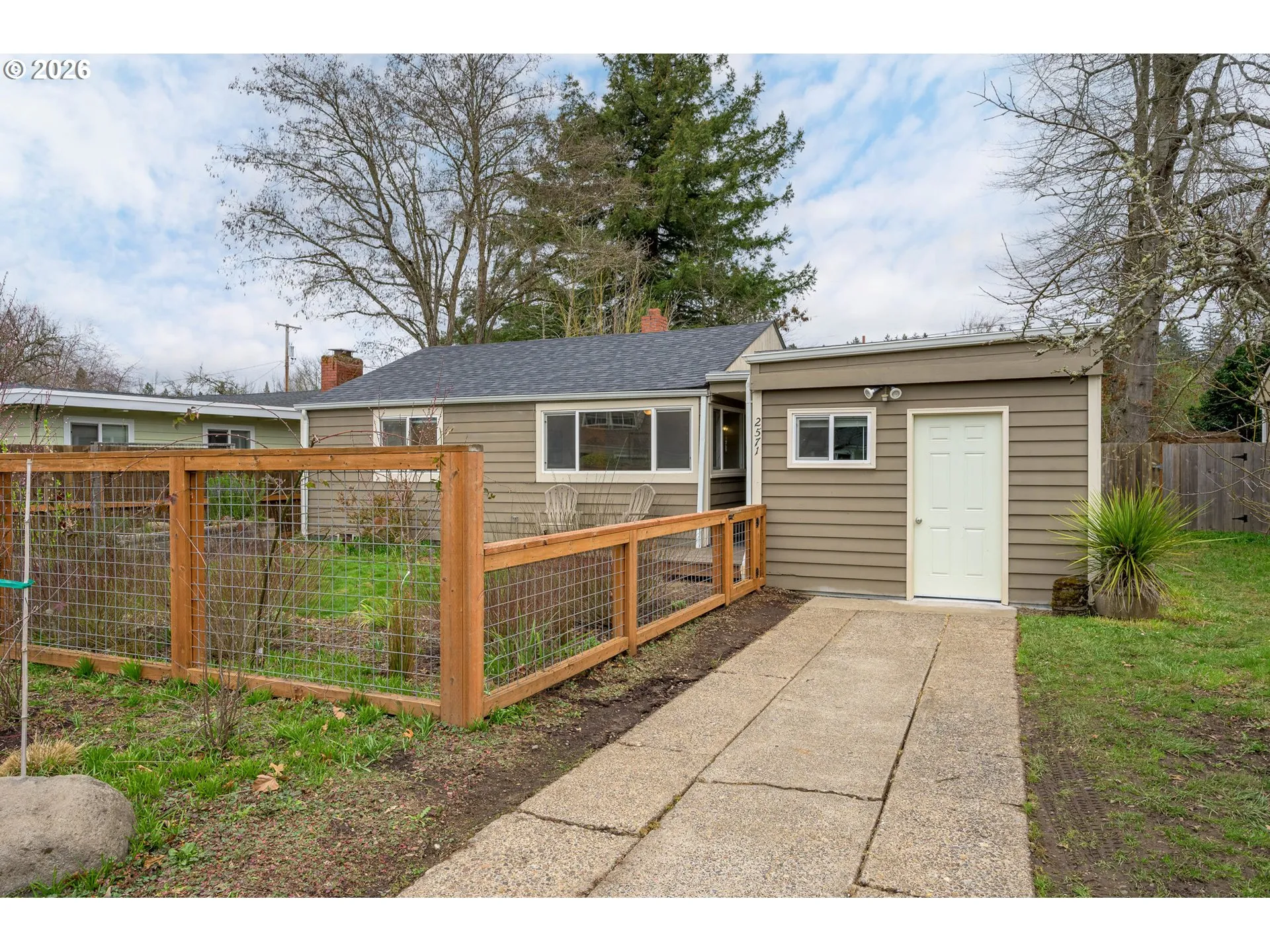 Open Houses Sat 3/14 & Sun 3/15 from 11a-1pm! Discover 2571 Alder St — an affordable 3-bedroom gem in Eugene’s coveted University District! This 1,120+ sqft home features original wood floors, vinyl windows throughout, additional utility/storage room (not incl in sqft), a newer roof, and two ductless heating/cooling units for year-round comfort. The updated bathroom and kitchen keep things fresh, while a spacious dining/family room opens through a slider to your back deck and sunny fenced yard with large tool shed and potential for alley access and maybe even a future garage or ADU. But the real magic? The front yard is a gardener’s paradise — perennial flowers, thornless blackberries, apple and peach trees, blueberries, strawberries, raised beds, and a culinary herb garden. A true forage patch for humans and birds alike! It is also drought tolerant with grass that doesn’t need to be watered. Considering the age, this home is in great shape and it is a sweet location just steps from Amazon Park, the new YMCA, Sundance Natural Foods, and minutes to the University of Oregon and Hayward Field. Strong rental income potential in this prime location too! Washer, dryer, and fridge included. Don’t sleep on this one — schedule your showing today!