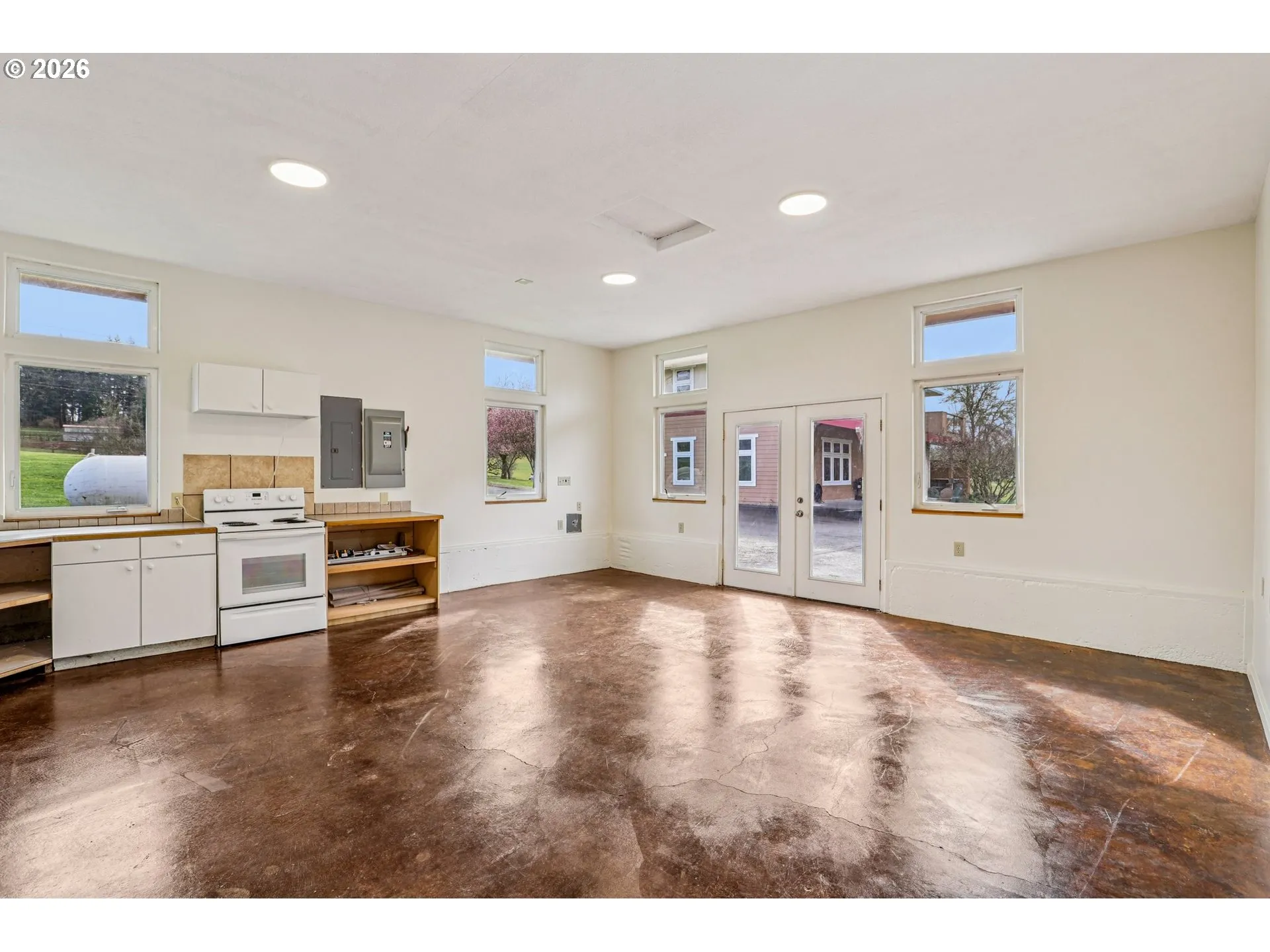 Custom home with welcoming covered front porch. 6-lite entry door opens to a spacious foyer with soaring ceiling and stairwell featuring solid mahogany railings and balusters. Great room features a family room with 3-sided propane fireplace, stone surround hearth, built-ins, ceiling fan, recessed lighting, and French doors with internal blinds provide access to the covered patio. Gourmet island kitchen offers stainless appliances including double wall ovens, 5-burner propane cooktop, range hood, dishwasher, trash compactor, refrigerator, tile counters and backsplash, abundant custom cherry cabinetry with pull-outs, island dining, desk area, separate breakfast bar, and recessed lighting, plus a separate dining area. Upper-level primary en-suite features propane fireplace, ceiling fan, walk-in closet, dual sink tiled vanity, soak tub with dual shower heads, private water closet, wainscoting, and French doors to a 250 sq ft view deck. Additional accommodations include five more bedrooms with organized closets, one a possible bonus room option, den/office with French doors and bookcases, loft, laundry/mud room with sink and storage, storage room, linen closet, powder room, and two full baths. Main level offers 9-ft 6-inch ceilings and radiant heated stained concrete floors; upper level offers 9-ft ceilings, wide stairwell and hallways, carpet and tile flooring, Abundant natural light from clerestory and large windows throughout. Extra-deep 3-car garage with work bench and storage with attached 716 sq ft ADU with French door entry includes great room, kitchen with electric range and dishwasher, bedroom, full bath, laundry hookups, electric water heater, high ceilings, and stained concrete floors. Exterior: 9.02 flat usable acres, covered patio, fire pit slab, hot tub, six fenced raised beds with sprinklers, tool shed, play structure, barn with loft and dry storage, landscaped, fenced grounds, sprinklers. Mortgage savings may be available for buyers of this listing.