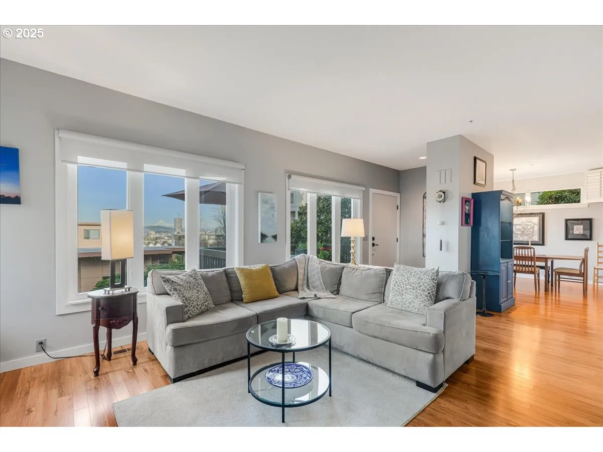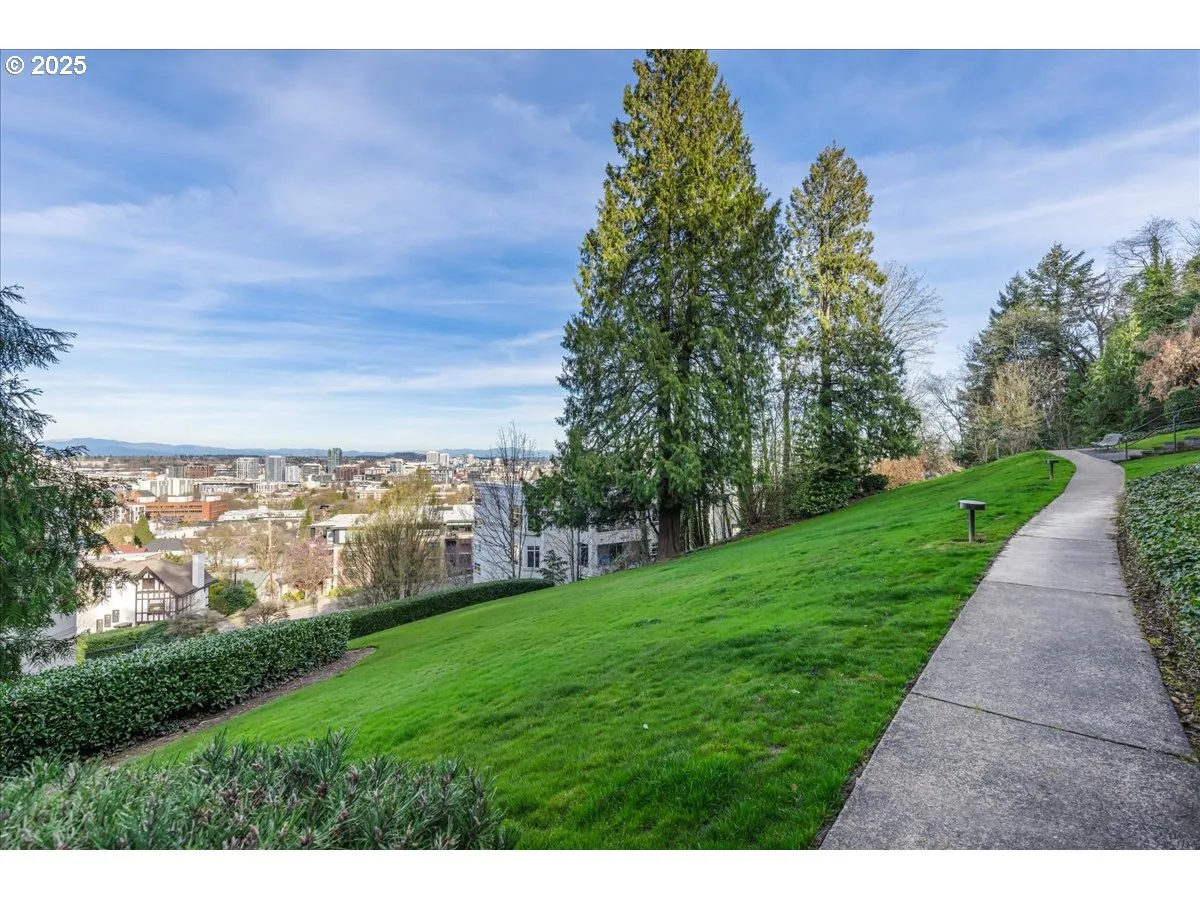Rare opportunity to reside in this light, bright condo in desirable Hillside community above vibrant NW 23rd Ave. This large 1 bed, 1 bath features a wall of windows and expansive deck that takes in views of Mt. Hood and city lights. Remodeled Kitchen and Bath. New Windows and Heat Pump. Utilities: Water/Sewer $124. Garbage $47. Cable $91.