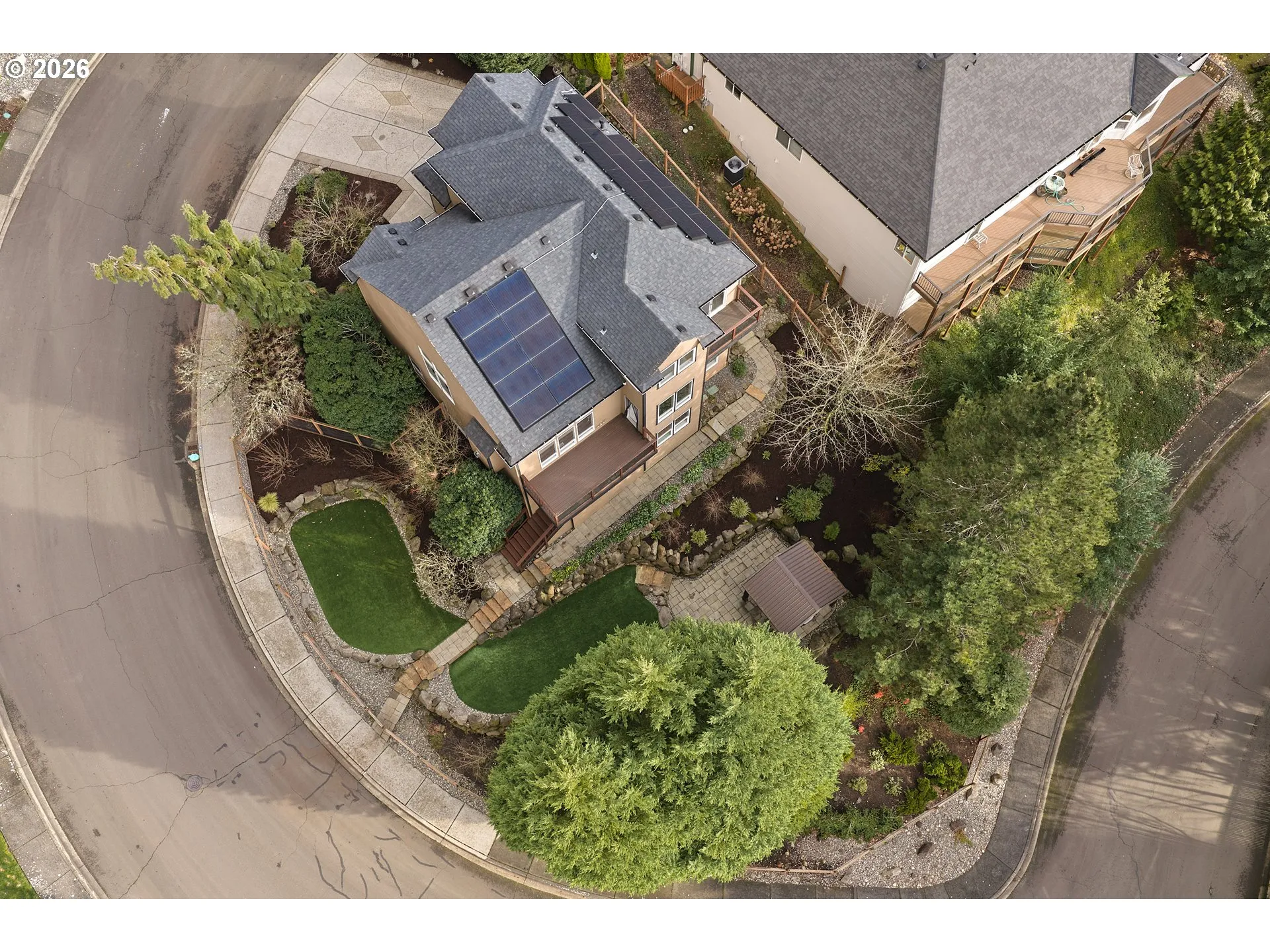 Perched to capture unforgettable west-facing sunsets, this home truly delivers the layout, upgrades, and lifestyle you’ve been searching for. A full 5 bedrooms + office, two kitchens, three living spaces, three decks, and an incredible backyard. What more could you ask for?The upper level hosts three of the bedrooms, anchored by a primary suite that feels like its own private sanctuary. Enjoy evening views from your personal balcony, then relax in a large soaking tub surrounded by oversized windows and natural light. On the main floor, just off the entrance is a large office with glass French doors and a closet. The great room has a cozy gas fireplace and an extra high wall of windows drawing your eyes straight out to the distant horizon. The family room captures the glow of the setting sun, while the adjacent kitchen and dining areas create a flow for entertaining. The elevated Trex deck extends your living space outdoors and overlooks the beautifully tiered yard below. The daylight basement offers incredible flexibility — complete with a new kitchenette, two additional bedrooms, a full bath, laundry, and a spacious living area bathed in natural light. Perfect for guests, extended living, or private quarters. Step outside to the extensively upgraded backyard designed for aesthetics, fun, and utility. Terraced landscaping, dramatic boulder walls, dual artificial turf areas, and a covered lower patio create a peaceful, low-maintenance retreat wrapped in mature greenery. With major updates already completed — HVAC (2020), tankless water heater (2020), roof (2016), solar (2020), Flair smart venting, reverse osmosis system with instant hot — this home offers confidence and comfort from day one.