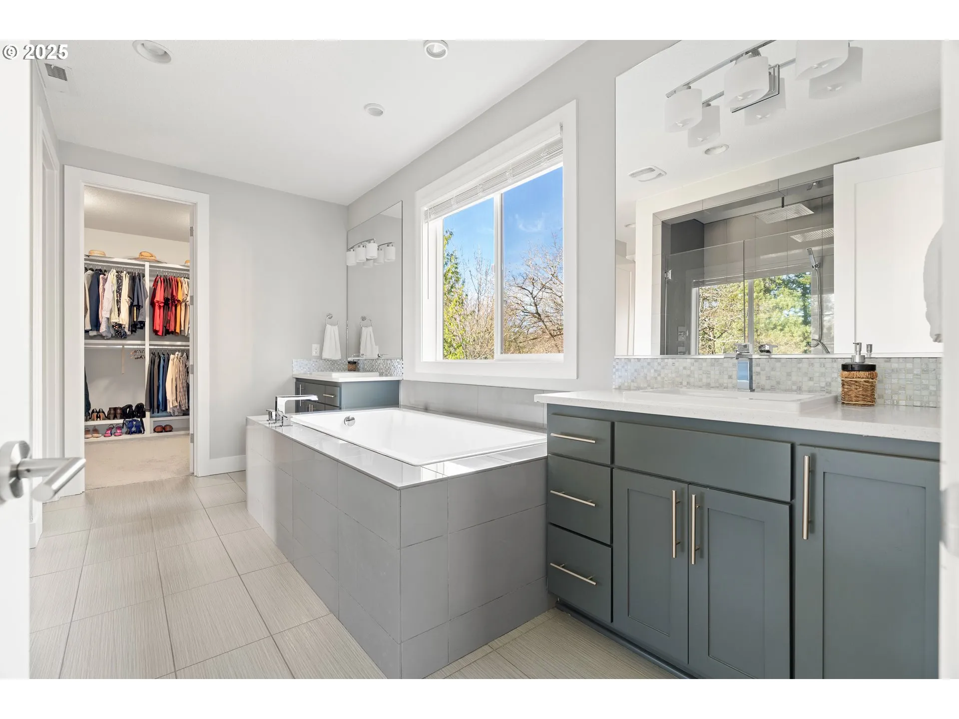 A rare modern retreat in the heart of Cedar Mill, this stunning contemporary home blends striking design with exceptional craftsmanship on an expansive, nearly 0.3-acre setting. Thoughtfully executed with premium finishes and an open, flowing layout, this home offers both sophistication and everyday livability. Inside, soaring ceilings and abundant natural light create an airy, gallery-like feel. The main level is anchored by wide-plank floors and a stunning chef’s kitchen featuring quartz countertops, a waterfall-edge island, a walk-in pantry, a butler’s pantry, and high-end Jenn-Air appliances. A spacious den with French doors provides a quiet workspace or flexible guest space. Upstairs, the luxurious primary suite offers a private sanctuary, featuring a tiled walk-in shower, double vanity, soaking tub, custom-designed walk-in closet, and direct access to the laundry room for added comfort. The floor plan supports easy everyday living, with all bedrooms and a bonus room conveniently located upstairs alongside the laundry room. Designed for year-round enjoyment, the partially covered patio overlooks a fully fenced, expansive backyard with potential for a sport court or play structure. A generous 3-car garage offers ample space for storage, tools, and recreation gear. With refined contemporary style, premium materials, and expansive indoor–outdoor living, this home delivers a rare combination of quality and comfort within a coveted top-rated school district, and is also close to parks, restaurants, and grocery stores.