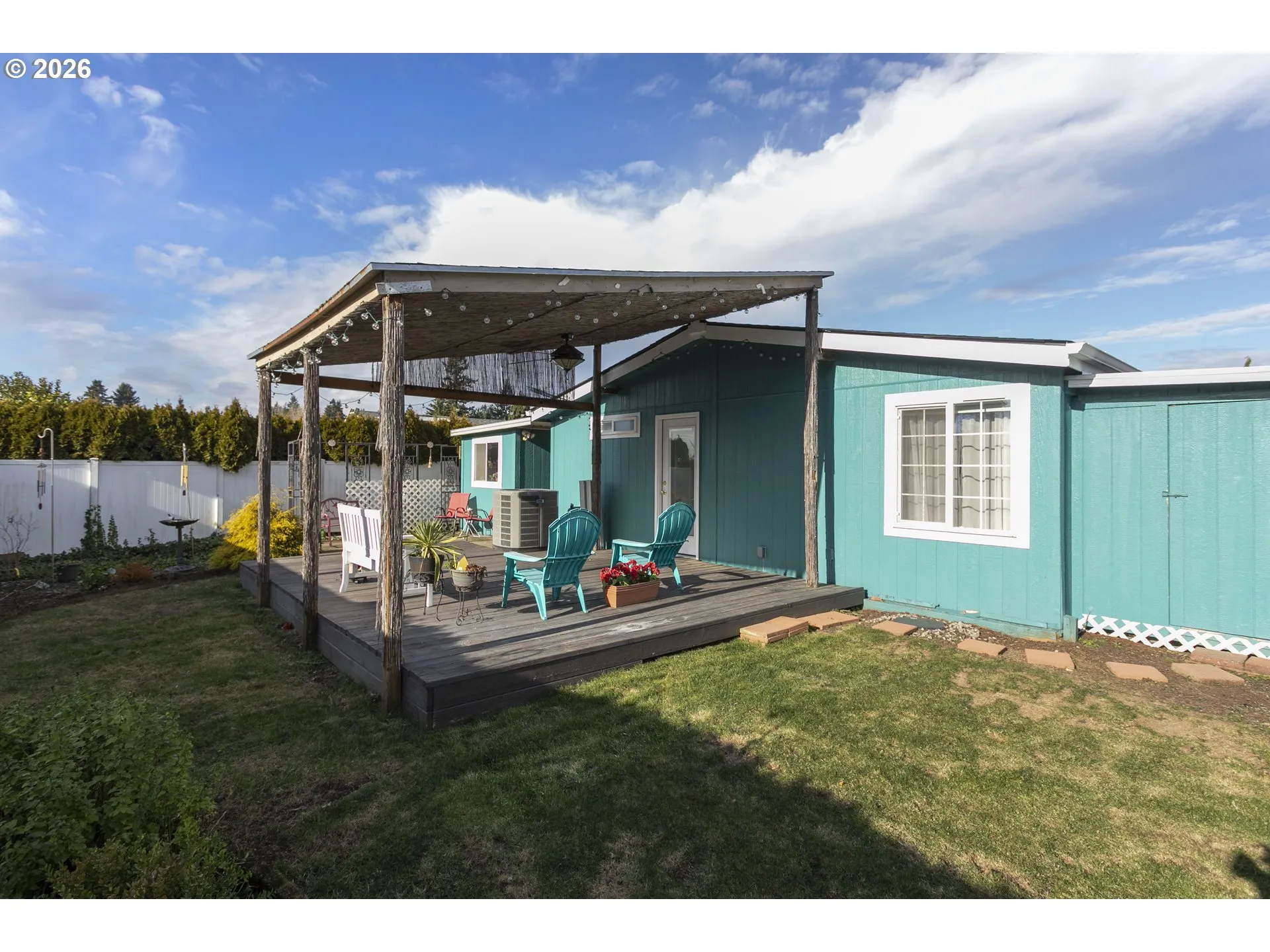 Vista Del Rio is a well-maintained 55+ community offering a welcoming atmosphere, wide streets, and generous green space for added privacy. Get to know and enjoy your neighbors! Community amenities include a clubhouse, recreation room, bathrooms,on sight management, secure mail room, outdoor recreation area and outdoor pool. All these amenities are for your use and excellent for family entertainment get togethers. This light and bright like NEW home features 2 bedrooms plus a den (could be 3rd bedroom), 2 bathrooms, vaulted ceilings, skylights, and an open-concept layout with abundant natural light. Recent updates include new interior and exterior paint. New furnace and A/C unit, new roof and refrigerator, newer floor coverings, kitchen cabinets refreshed. Exterior features include a covered deck, patio, fenced yard, and two large storage units. The extended driveway accommodates up to three vehicles. Conveniently located to I-205 with easy freeway access, and not far from shopping, dining, and nearby hospitals. Don’t wait another minute call for your opportunity to tour this magnificent home!