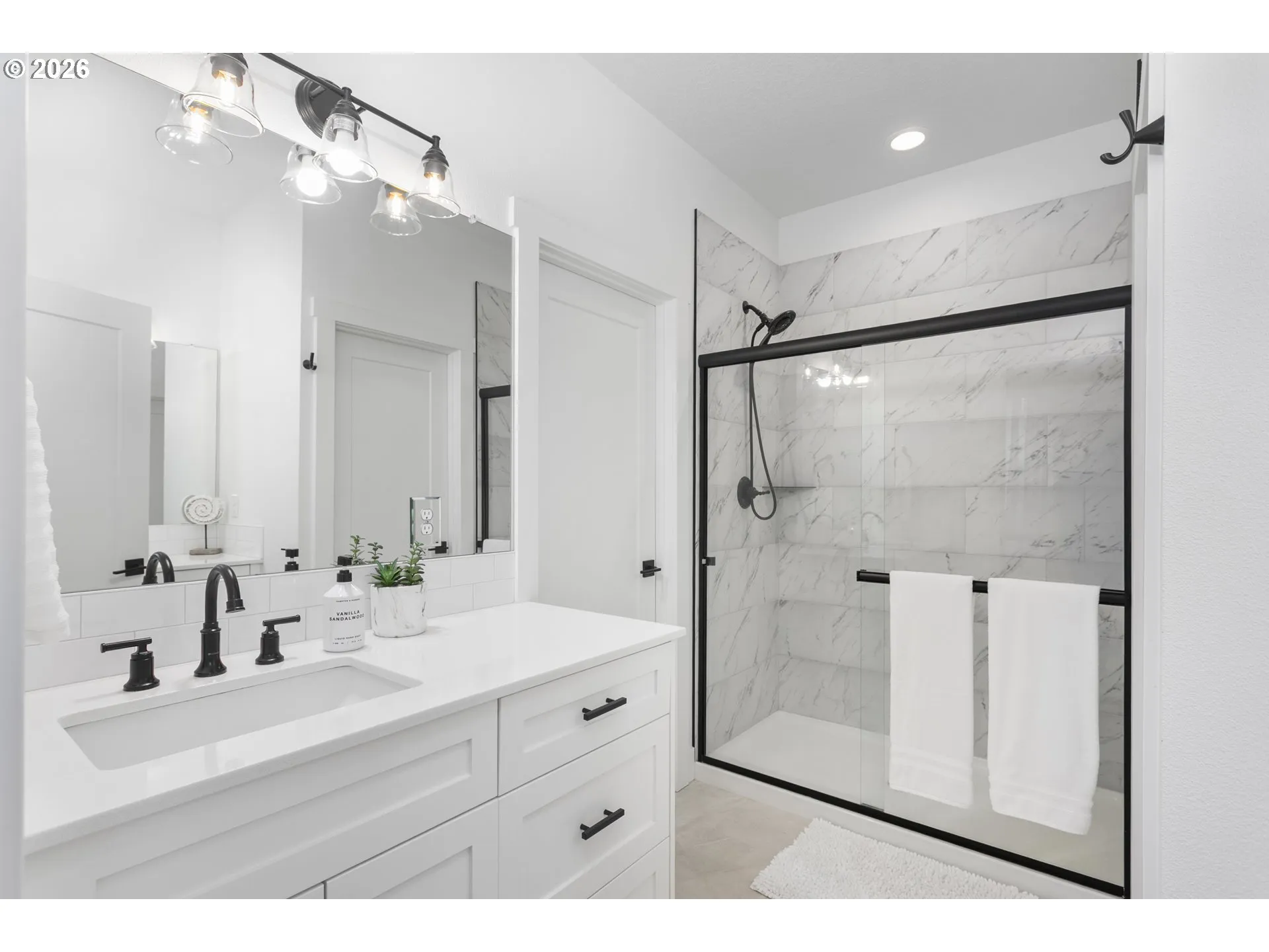 Discover modern comfort in this beautifully crafted 2022 townhome in Battle Ground. Thoughtfully designed with a cozy yet refined farmhouse feel, the home features marble, quartz, LVP, and tile finishes throughout. The open-concept kitchen offers a large island, stainless steel appliances, and quartz countertops—perfect for everyday living and entertaining. High ceilings create a bright, open atmosphere, while generously sized rooms provide comfortable living spaces.The primary suite is filled with natural light and includes a double-vanity bath with a walk-in shower. Tucked away on a private dead-end, the home backs to a peaceful wetland field, offering both privacy and scenic views. Located just minutes from Lewisville Park and Daybreak Park & Boat Launch, and within easy reach of shopping at Battle Ground Market Center and West Main Commons, this townhome offers the perfect balance of quiet living and everyday convenience.