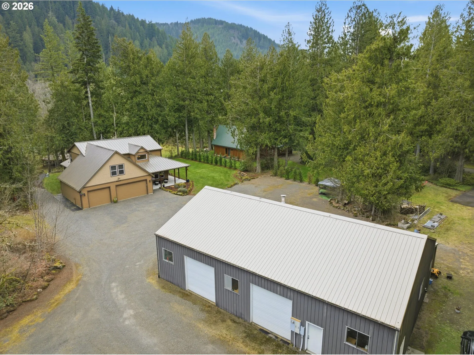 165 ft of river frontage is the centerpiece for this exceptional 5.15-acre property, complete w/40×60 fully equipped shop & a stunning 36×36 powered log pavilion right along the water. Built in 2015, this 3,240 sq ft home offers 4 bedrooms & 2.5 bathrooms w/a layout designed for both comfort & entertaining. Inside, the main level features a dramatic family room w/19’ ceilings, a formal dining room, a spacious kitchen with granite countertops, upgraded tile backsplash, island, & dedicated coffee bar. The primary suite is located on the main floor & features double walk-in closets & a custom oversized stone walk-in shower designed w/spa-like feel. Upstairs, oversized bedrooms & a bonus room w/shuffleboard provide flexible space for guests, hobbies, or entertaining. A covered back patio overlooks the river, creating a natural extension of the living space outdoors. Follow the private road down to the 36×36 log pavilion w/power & fans perfecting situated in a park-like setting of grass & trees along the river-an ideal gathering place just steps from the water. Fish directly from your own bank, relax while listening to the river flow by, or enjoy evenings at the horseshoe pit under the light pole.The 40×60 shop features concrete floors, 3 10-foot bay doors, workbenches, woodstove, canning room, full bathroom, 220amp, & a 10×60 covered lean-to on the side—ready for projects or storage. Flat, usable acreage at the top of the property provides space for animals & recreation. Additional acreage across Marmot road is included, providing extra space & flexibility for animals or recreation! The neighboring property is also available for purchase, offering the opportunity to expand your footprint along the river. With 165 feet of river frontage and thoughtfully designed indoor & outdoor spaces, this property presents a rare chance to create a multigenerational compound, wedding venue, vacation rentals, or private river retreat! *Open houses Sat 11-1 & Sun 1230-230pm!*