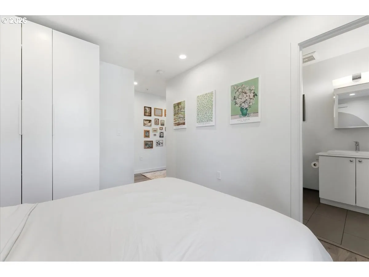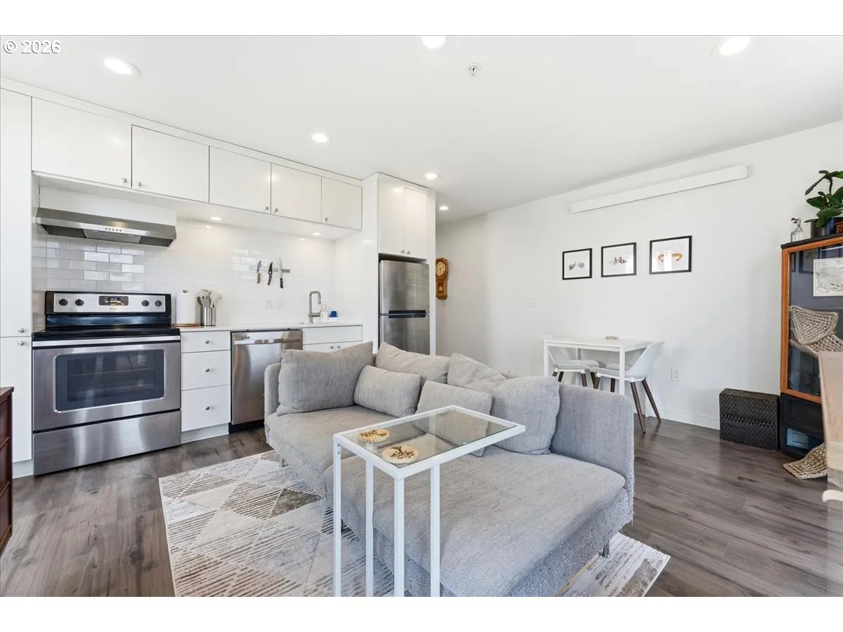 FHA assumable mortgage at a low low rate! Urban living in the heart of Arbor Lodge neighborhood and steps to all your favorite coffee shops, parks, grocery shopping and restaurants. Smart, efficient, light and bright, corner 1-bedroom (477sf #204) with plenty of windows. Open concept kitchen / living combo, stainless steel appliances, upper cabinetry makes for plenty of storage. Washer/dryer in storage closet. Tiled bath/shower and tile floor. New closet system. All new flooring, interior paint and trim. Designed by award winning architect, Brian Cavanaugh, of Architecture Building Culture. Double wall construction reduces sound & increases heat efficiency. Perfect for city dwelling transit riders. Moments to New Seasons, bars, restaurants on Killingsworth, Mississippi. All appliances included! FHA Assumable Mortgage! Schedule a tour today and don’t be shy to write an offer!