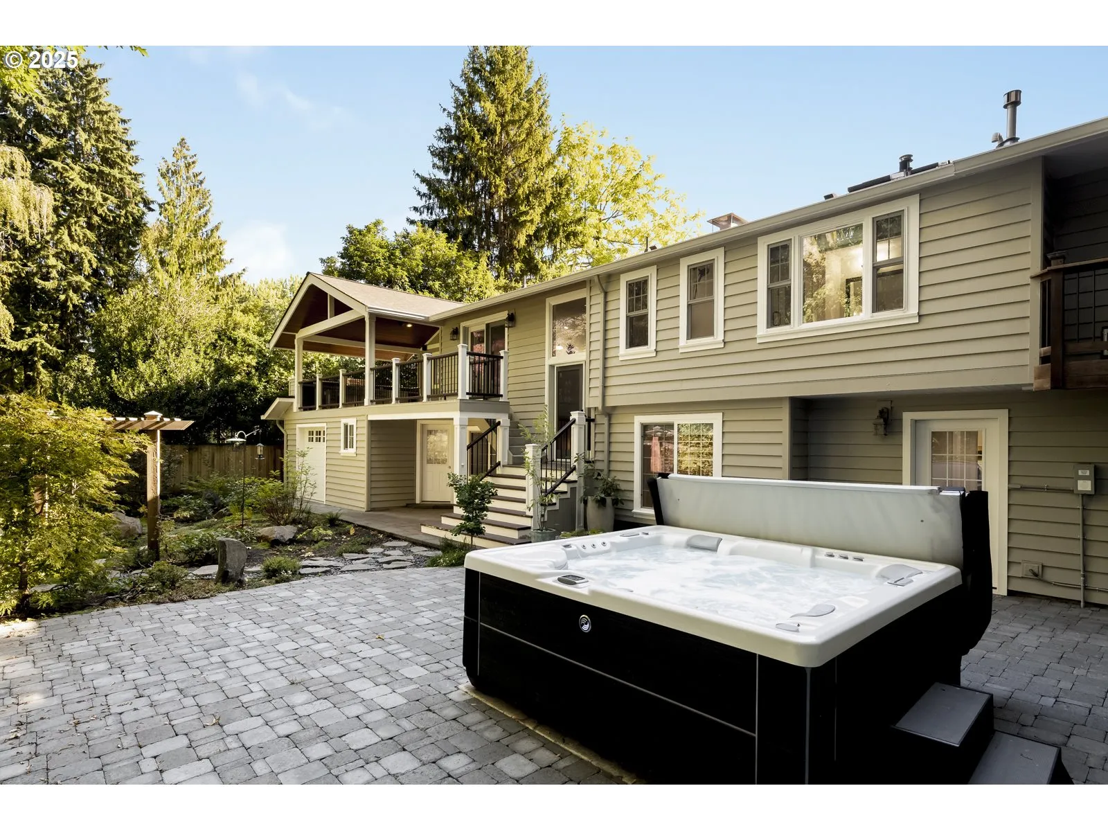 In the heart of First Addition, this home feels both connected and tucked away. Stroll to coffee, the market, or dinner in town—then return to a private backyard that borders Tryon Creek State Park.The open kitchen with vaulted ceilings and treetop views extends to a covered, four-season deck with its own grill and prep area—an outdoor kitchen perfect for year-round dining and entertaining.Upstairs, the primary suite offers a true retreat with a soaking tub, fireplace, walk-in closet, and peaceful views.The lower level adds flexibility with fresh wool carpet, two bedrooms with courtyard access, a second kitchen, and a cozy living room with its own fireplace—ideal for guests, multigenerational living, or movie nights. A dedicated office and separate-entry laundry make everyday life convenient.Outside, the thoughtfully designed landscaping creates spaces to gather or pause and reflect, with calming water features, a fire pit, saltwater hot tub, and a serene woodland backdrop.Well maintained and thoughtfully designed, this First Addition home pairs a prime location with a restorative connection to nature.