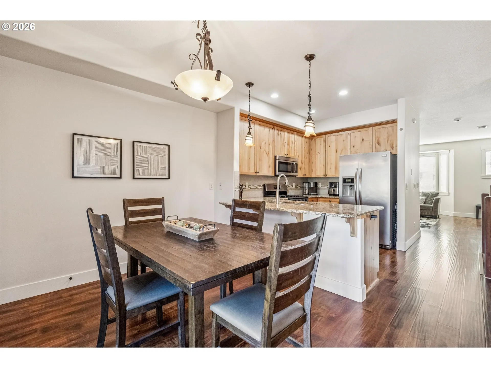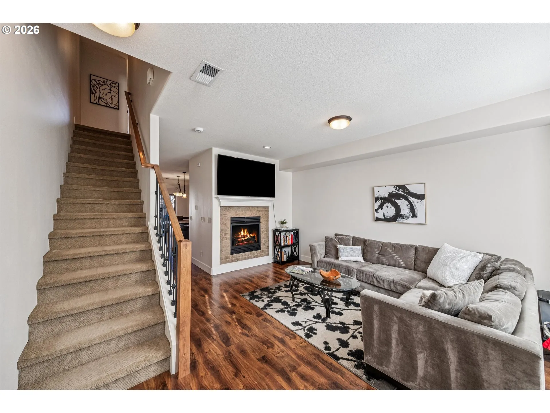 Welcome to this inviting three-level townhome offering 3 bedrooms and 2.1 baths with a floor plan designed for flexibility and comfort. The entry level greets you with convenient garage access and a versatile bedroom or flex space with a slider to the back patio—perfect for a third bedroom, home office, guest room, workout space, or quiet retreat. The main living level is the heart of the home, where the kitchen, dining, and living spaces come together in an open, airy layout. The kitchen features granite countertops, a pantry, an eat-up bar, a gas range, a microwave, and a refrigerator —all stainless steel appliances! Step out from the dining area to the back deck—an ideal spot for morning coffee or evening grilling. The spacious living room with a gas fireplace creates a cozy place to relax and gather, and a convenient half bath completes this level. Upstairs, the private primary suite offers a peaceful retreat with a walk-in closet and an en-suite bath with double sinks and a walk-in shower. A secondary bedroom, a hall bath with a tub/shower combo, and a laundry closet add everyday ease and functionality. An additional unfinished space above the primary provides generous storage today, with the option to create more finished space in the future. Convenient to neighborhood walking trails, parks, and the shops, dining, and entertainment of Progress Ridge, with easy access to commuter routes and major employers including Nike and Intel, this home brings together comfort, convenience, and lifestyle in one desirable setting.