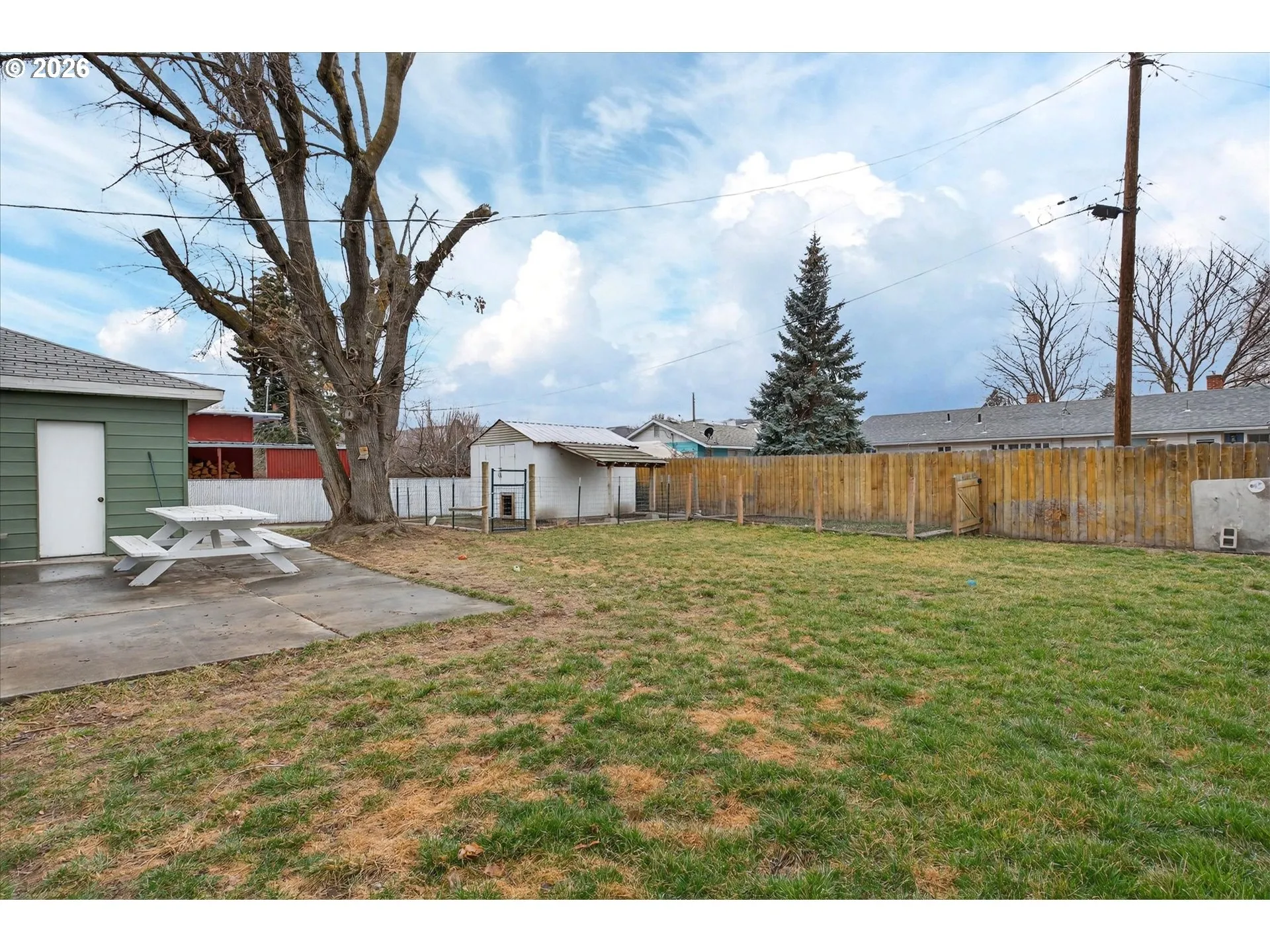 Well-maintained Mid-Century Ranch in the highly desirable Grandview neighborhood of Baker City, just minutes from historic downtown, local dining, and the Leo Adler Memorial Parkway walking path. This 2 bedroom, 2 bath home offers timeless character with original hardwood floor and fireplace. The basement provides flexible space with potential for a third bedroom, home office, or additional family room. A low-maintenance xeriscaped front yard and a spacious backyard featuring a patio and garden area. A versatile outbuilding works well as a dog run, chicken coop, or additional storage. The property includes a single attached garage plus an impressive 12′ x 60′ enclosed carport with roll-up door—ideal for RV parking, toys, workshop space, or extra covered storage. Rare covered parking capacity combined with in-town convenience makes this property a standout.